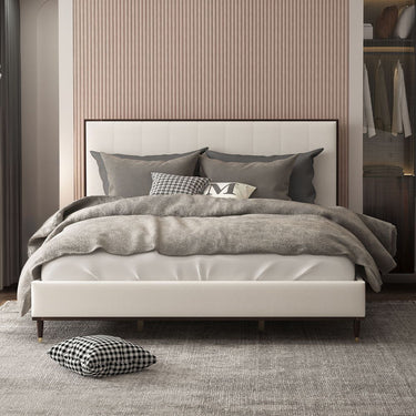 Carena - Queen Bed - Light Gray Fabric & White & Brown