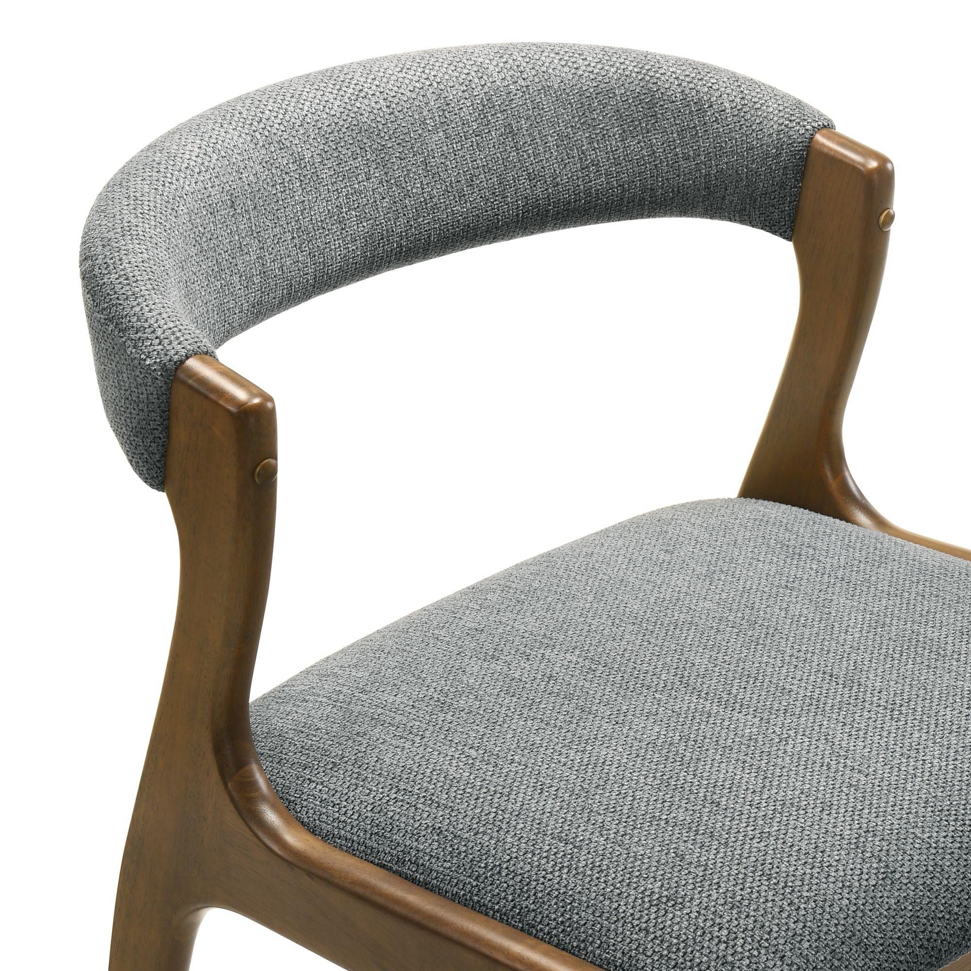 Ileena Mid-Century Modern Charcoal Upholstered Armless Solid Wood Dining Chair in Walnut Finish - Set of 2 from the Ileena collection delivers sleek comfort and timeless style to your dining area. Inspired by mid-century modern design, these chairs combine clean silhouettes, gentle curves, and smart material choices that elevate any space with ease. Each chair features a solid rubberwood frame finished in a warm walnut tone, highlighting the natural beauty of the wood grain while ensuring structural durability. The armless design adds a sense of openness around the table, making these chairs ideal for compact or airy layouts. Upholstered in rich charcoal performance fabric, they offer a soft yet resilient seating experience that’s built to withstand daily use and occasional spills. Whether paired with a matching dining table or styled on their own, these chairs strike the perfect balance between sophistication and function. Their versatile color palette makes them an easy fit for both casual kitchens and formal dining rooms. Assembly is quick and simple, requiring only about 5 minutes per chair with one person. The set is backed by a 1-year manufacturer's warranty for added peace of mind. Designed for everyday use and timeless appeal, the Ileena chair set adds comfort, structure, and a refined edge to any dining experience.