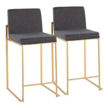 Fuji - High Back Counter Stool - Gold Steel And Gray Fabric (Set of 2)