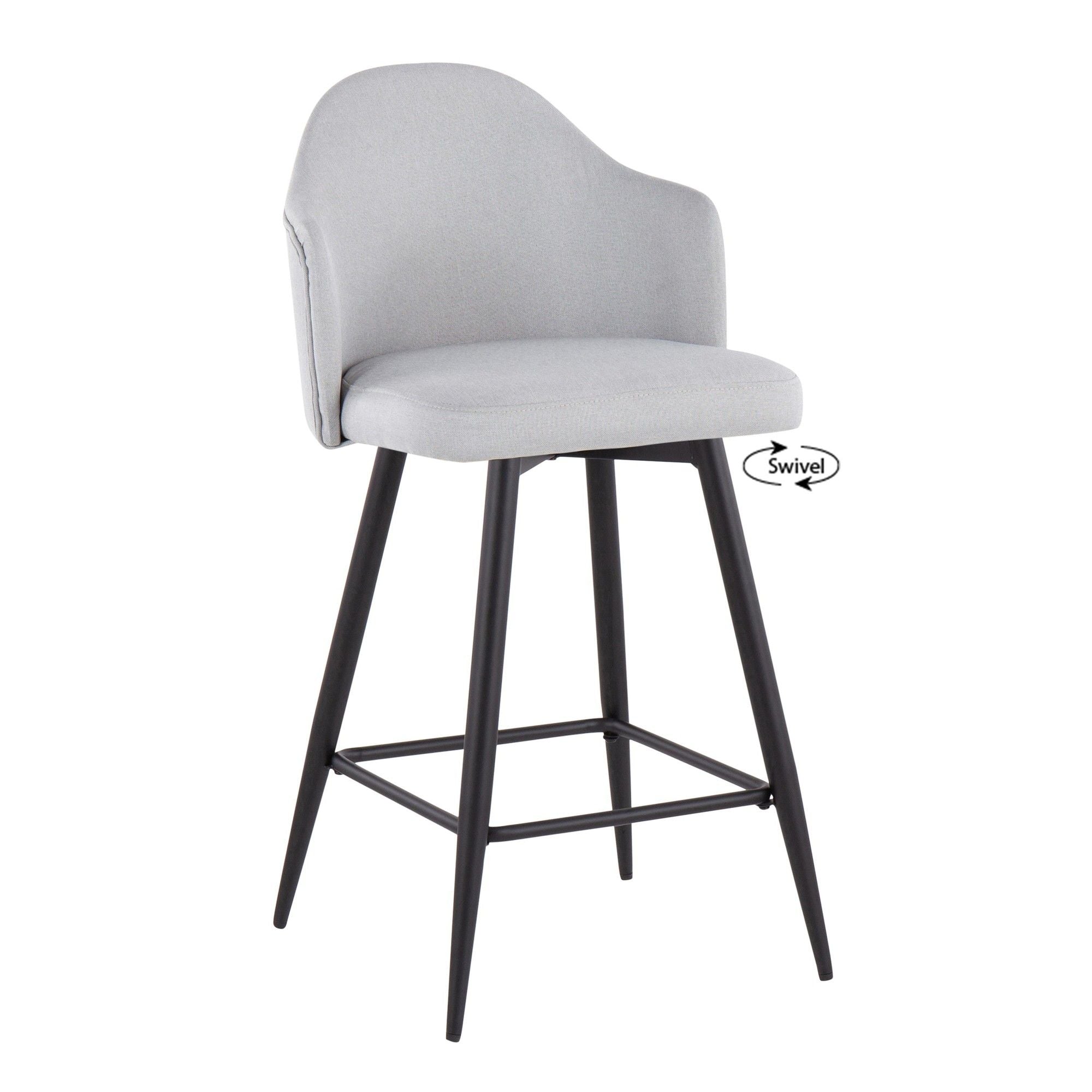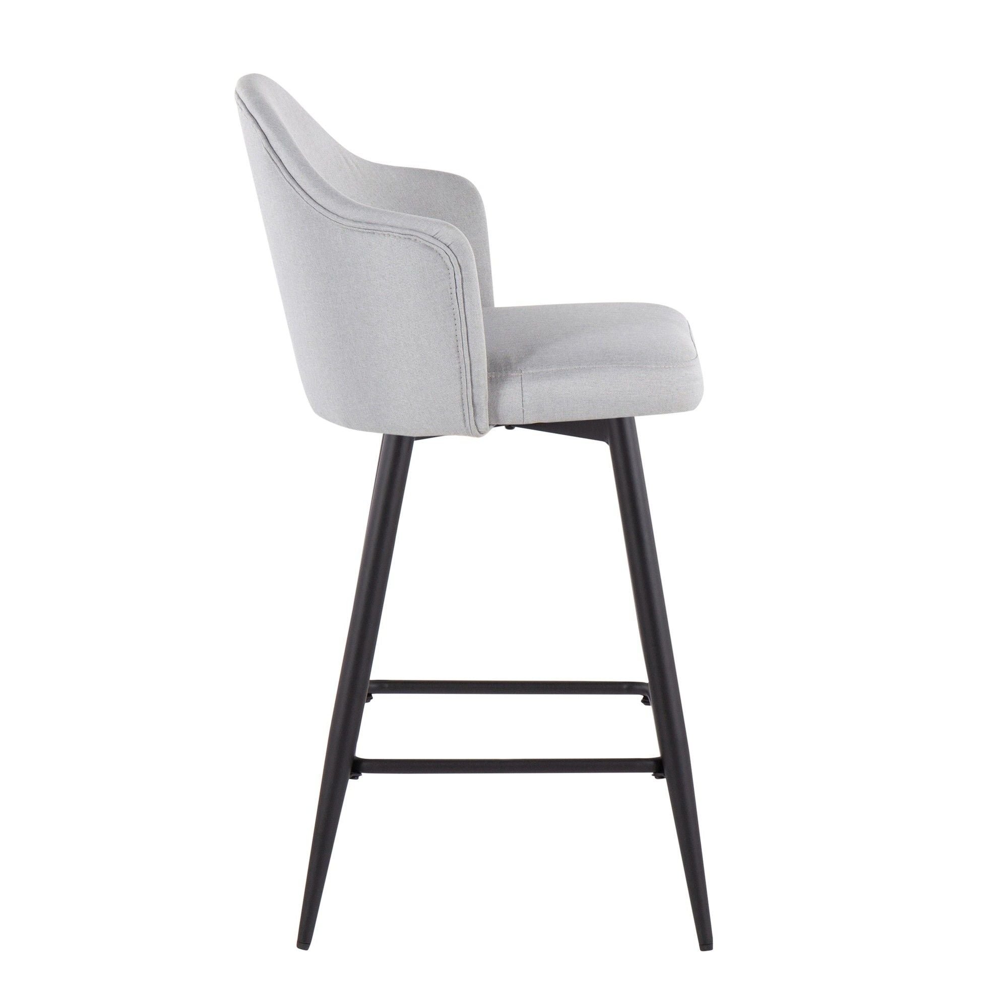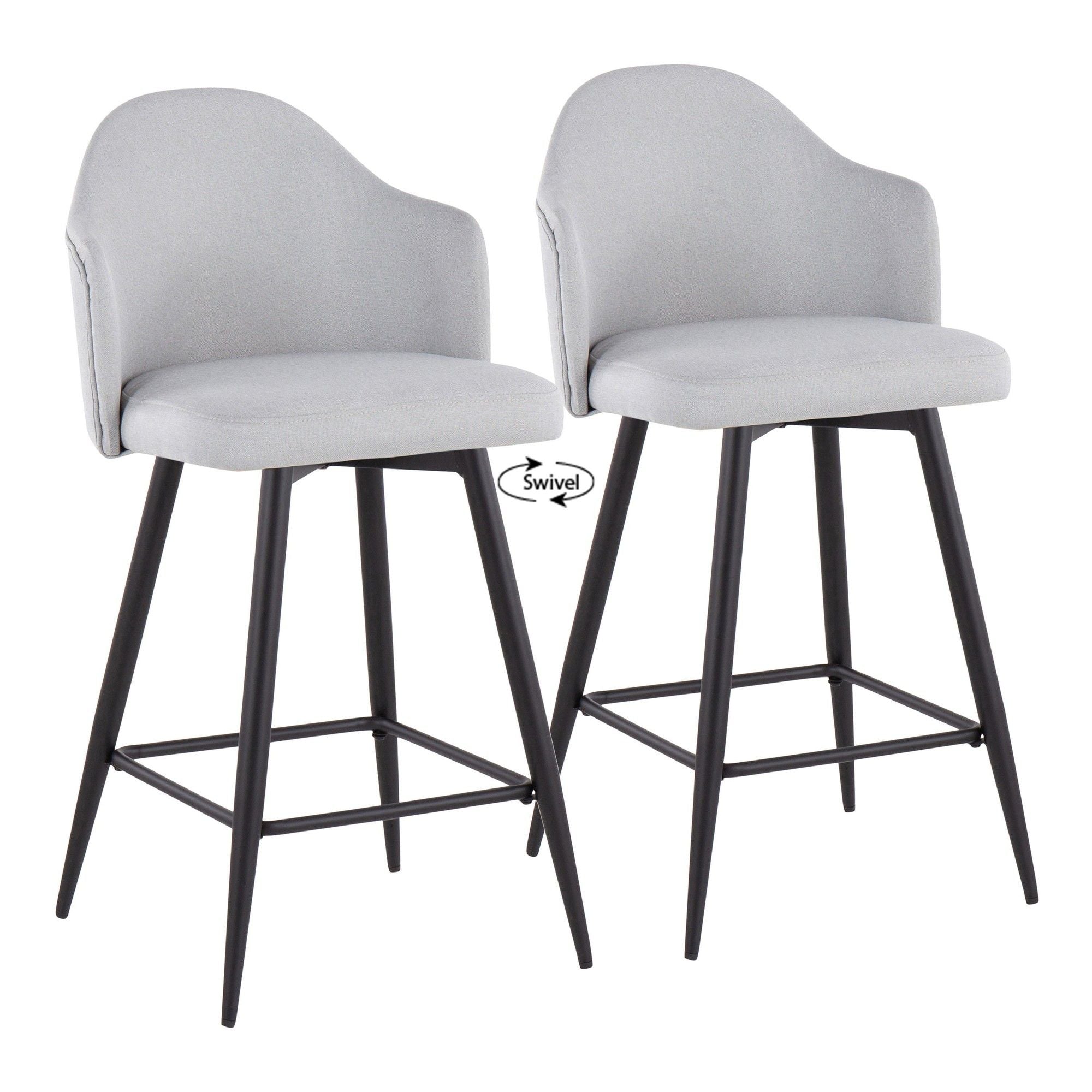 Ahoy - 26" Fixed - Height Counter Stool - Black Metal With Square Black Footrest And Light Gray Fabric (Set of 2)