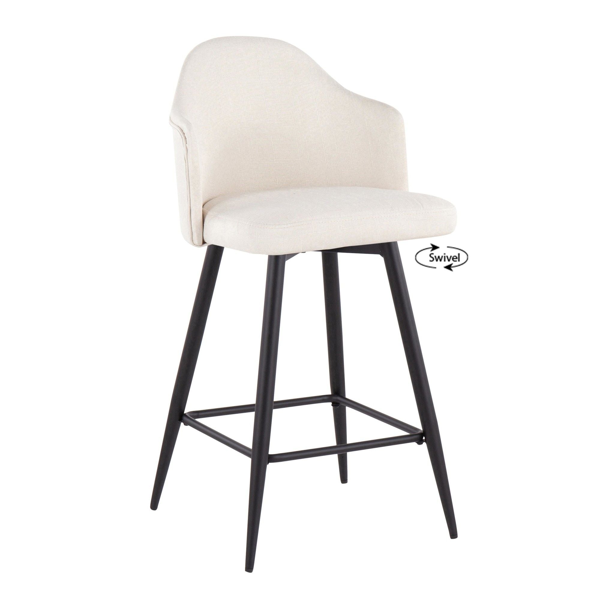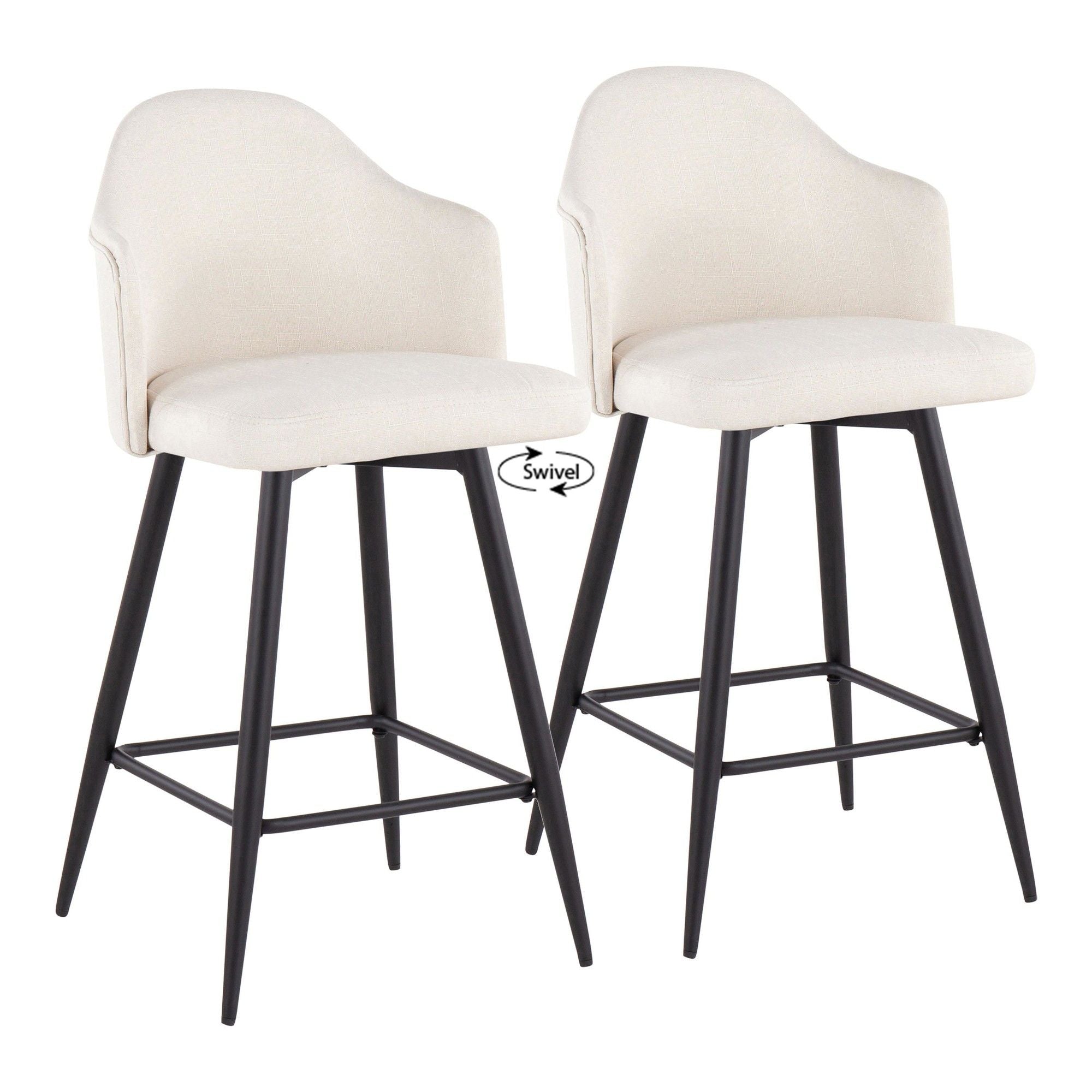 Ahoy - 26" Fixed - Height Counter Stool - Black Metal With Square Black Footrest And Cream Fabric (Set of 2)