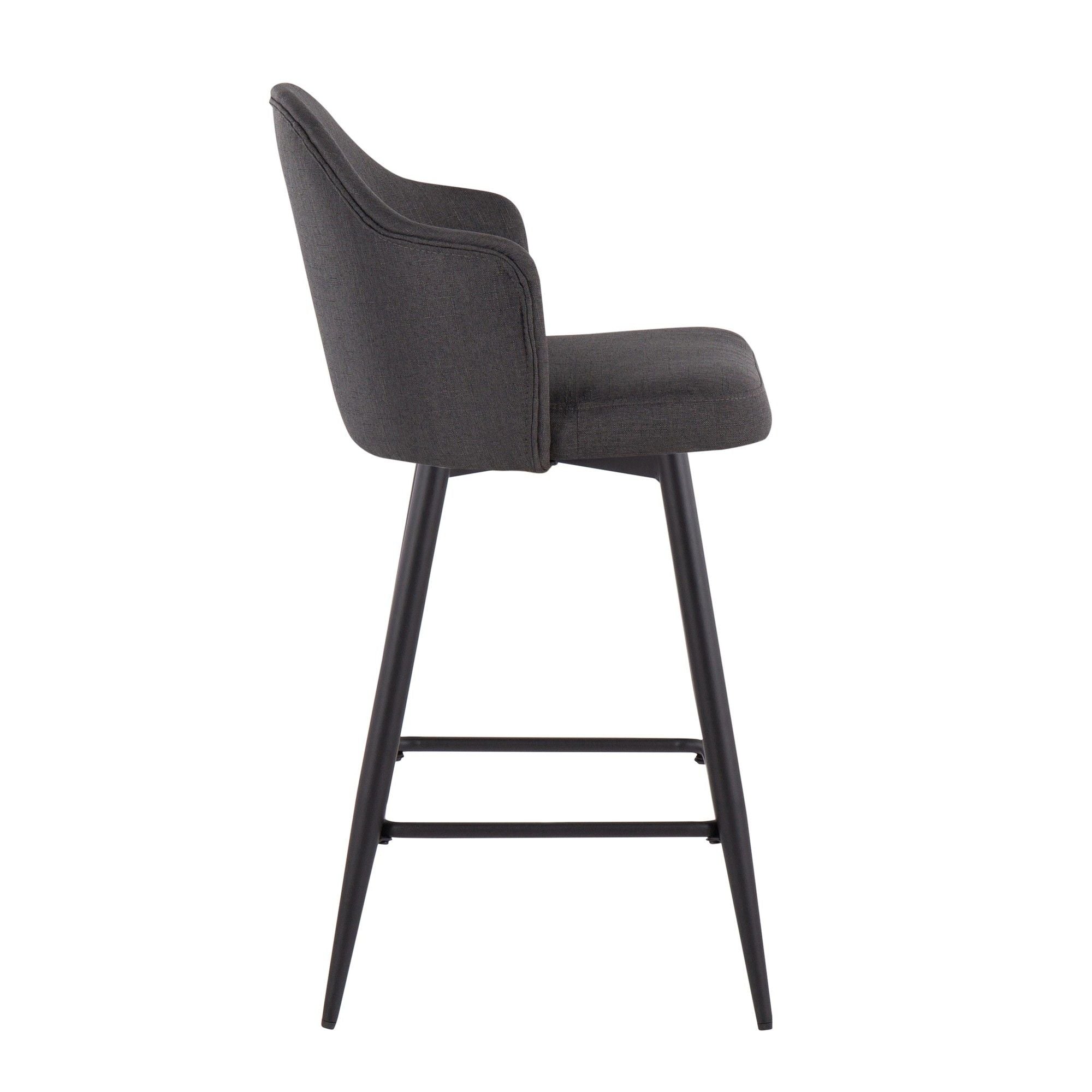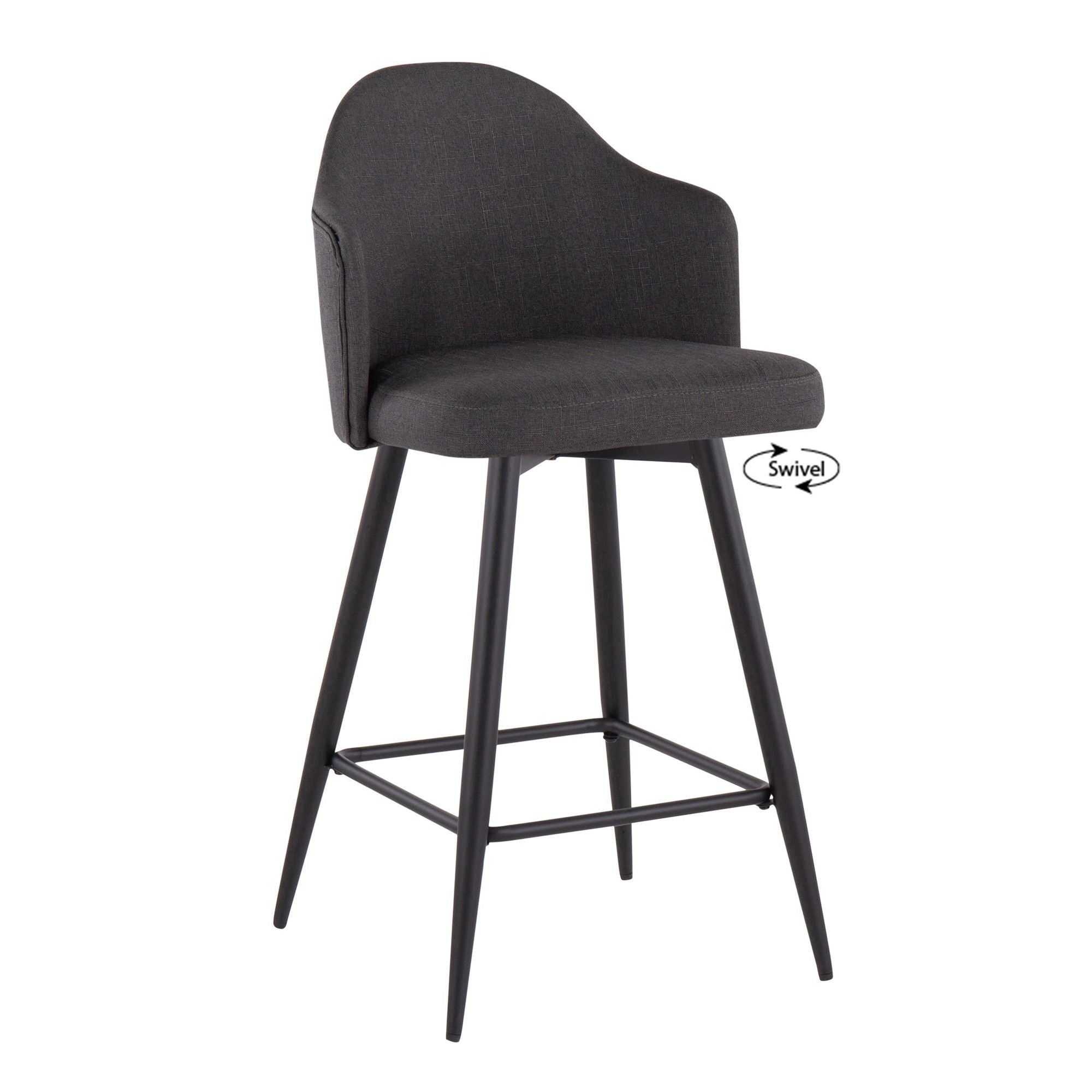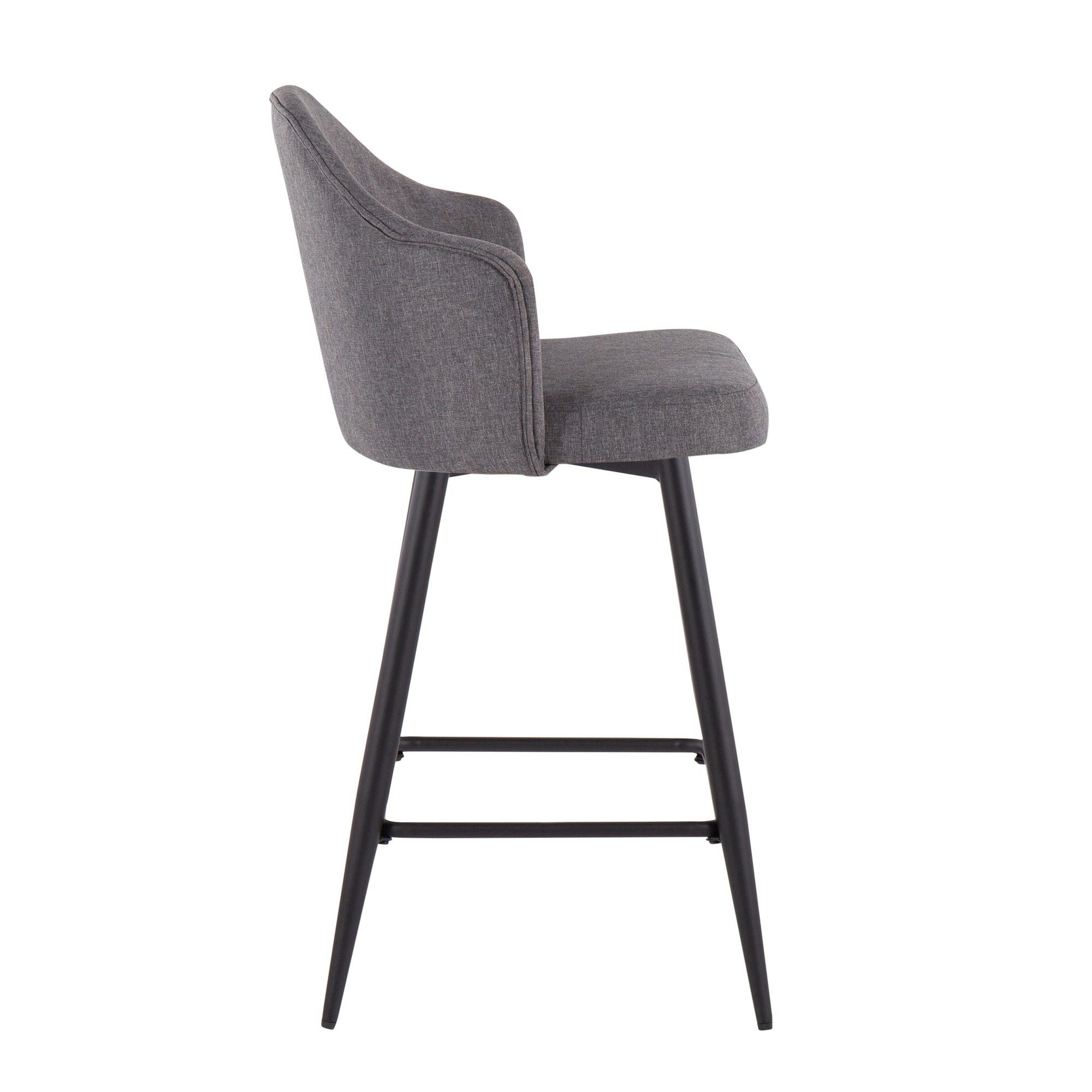 Ahoy - 26" Fixed - Height Counter Stool - Black Metal With Square Black Footrest And Charcoal Fabric (Set of 2)