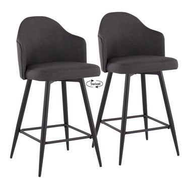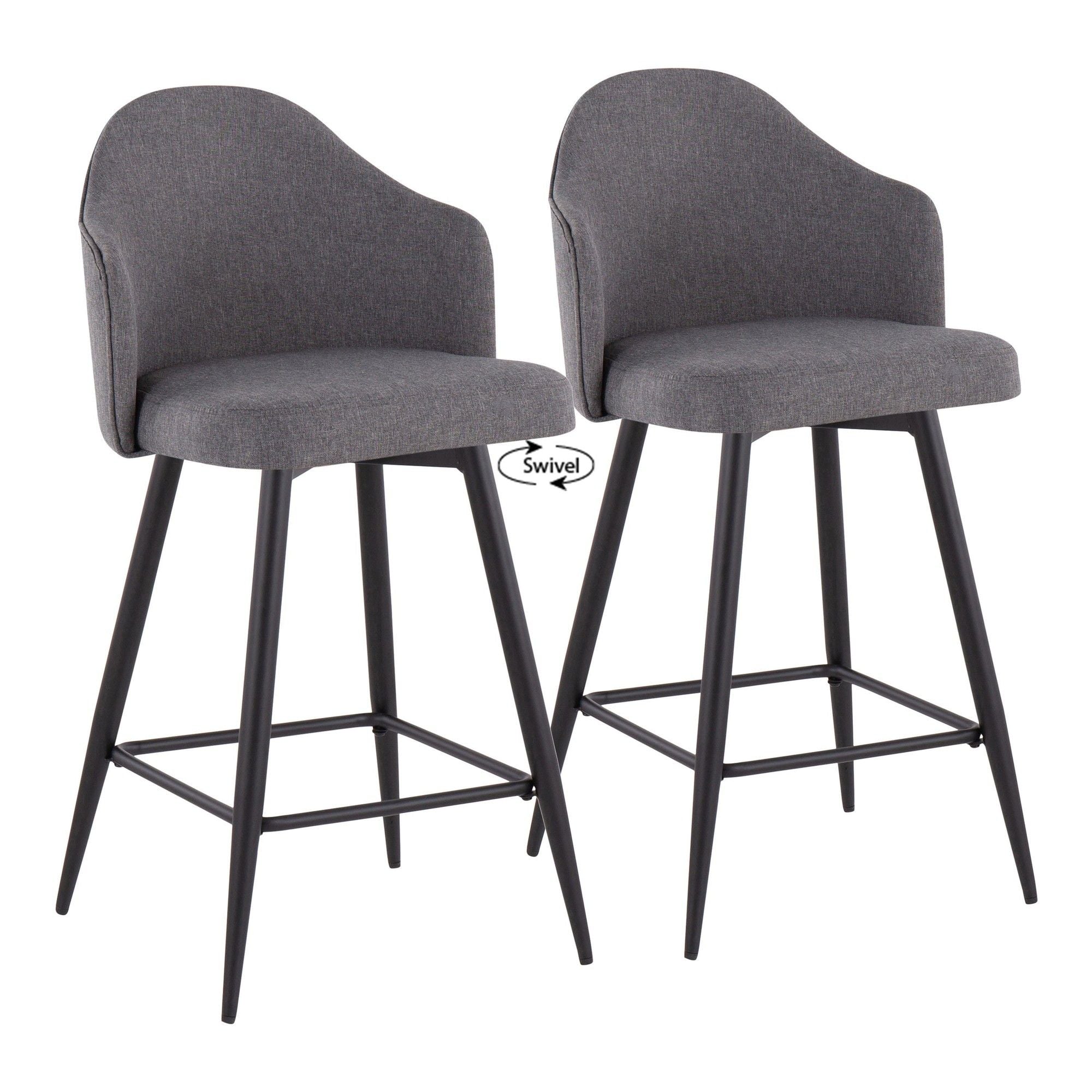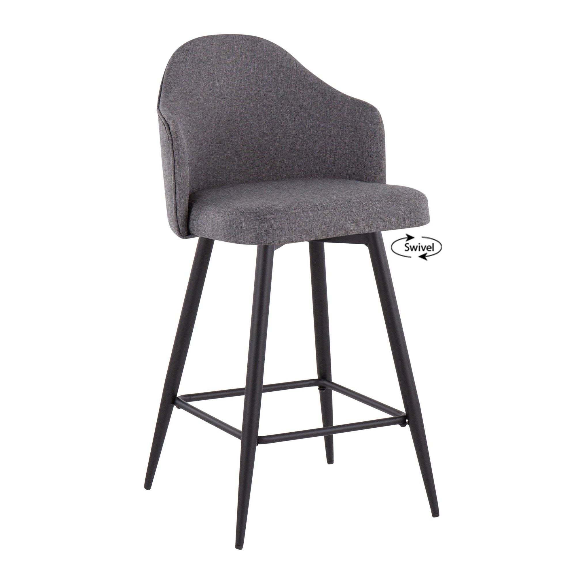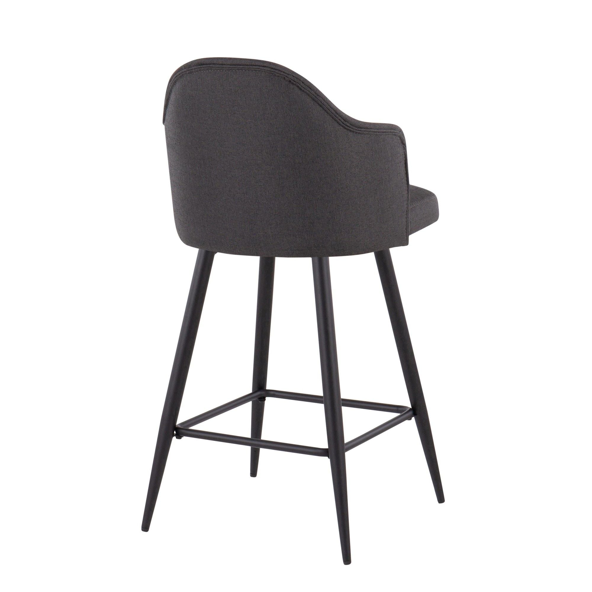 Ahoy - 26" Fixed - Height Counter Stool - Black Metal With Square Black Footrest And Charcoal Fabric (Set of 2)