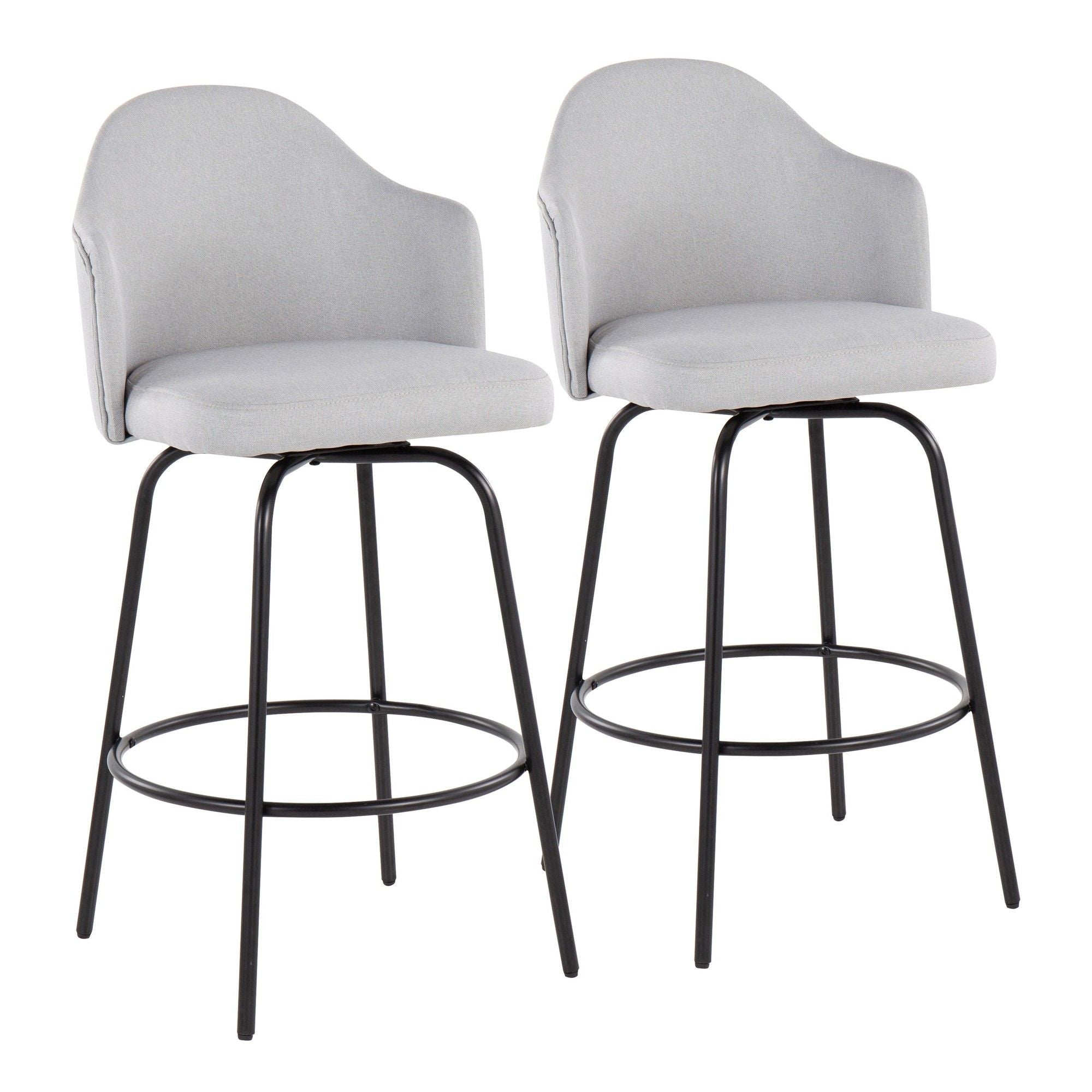 Ahoy - Fixed - Height Counter Stool - Black Metal And Light Gray Fabric (Set of 2)