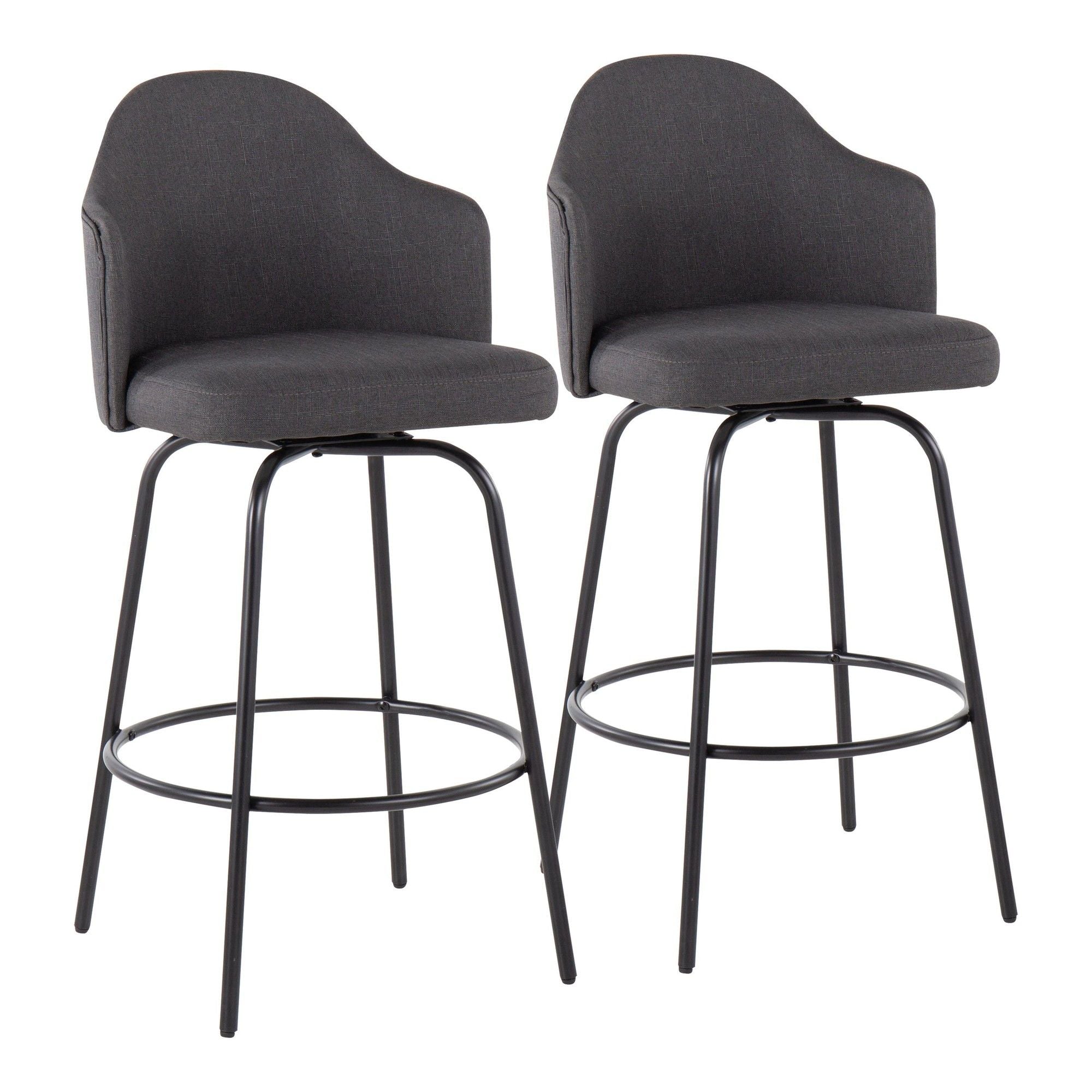 The contemporary charm of the Ahoy Counter Stool by LumiSource combines sturdy construction with aesthetic appeal. Sleek fabric upholstery is accented by black metal legs and a swivel seat. Available in a variety of color and pattern combinations.