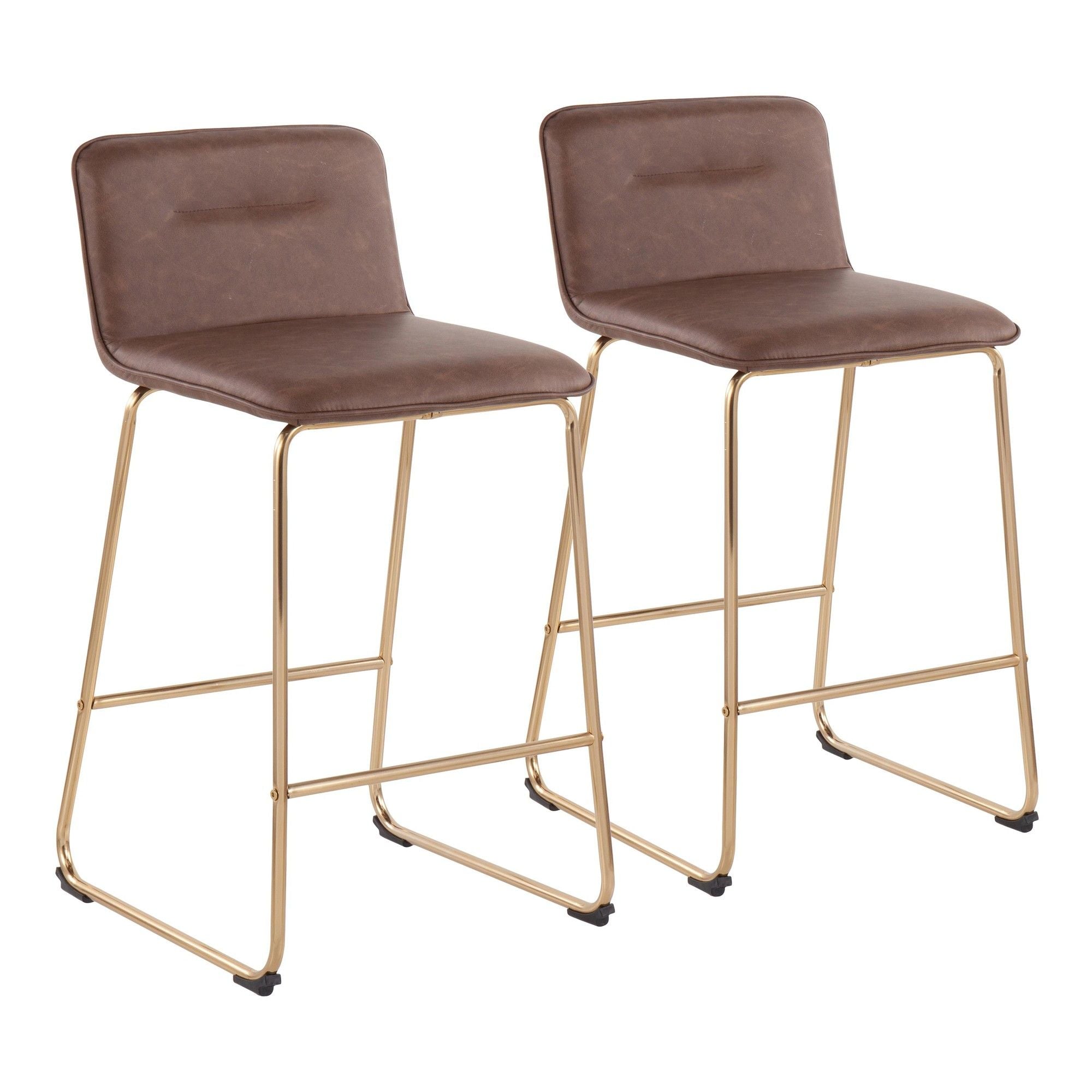 Casper - Fixed - Height Counter Stool - Gold Metal And Espresso Faux Leather (Set of 2)