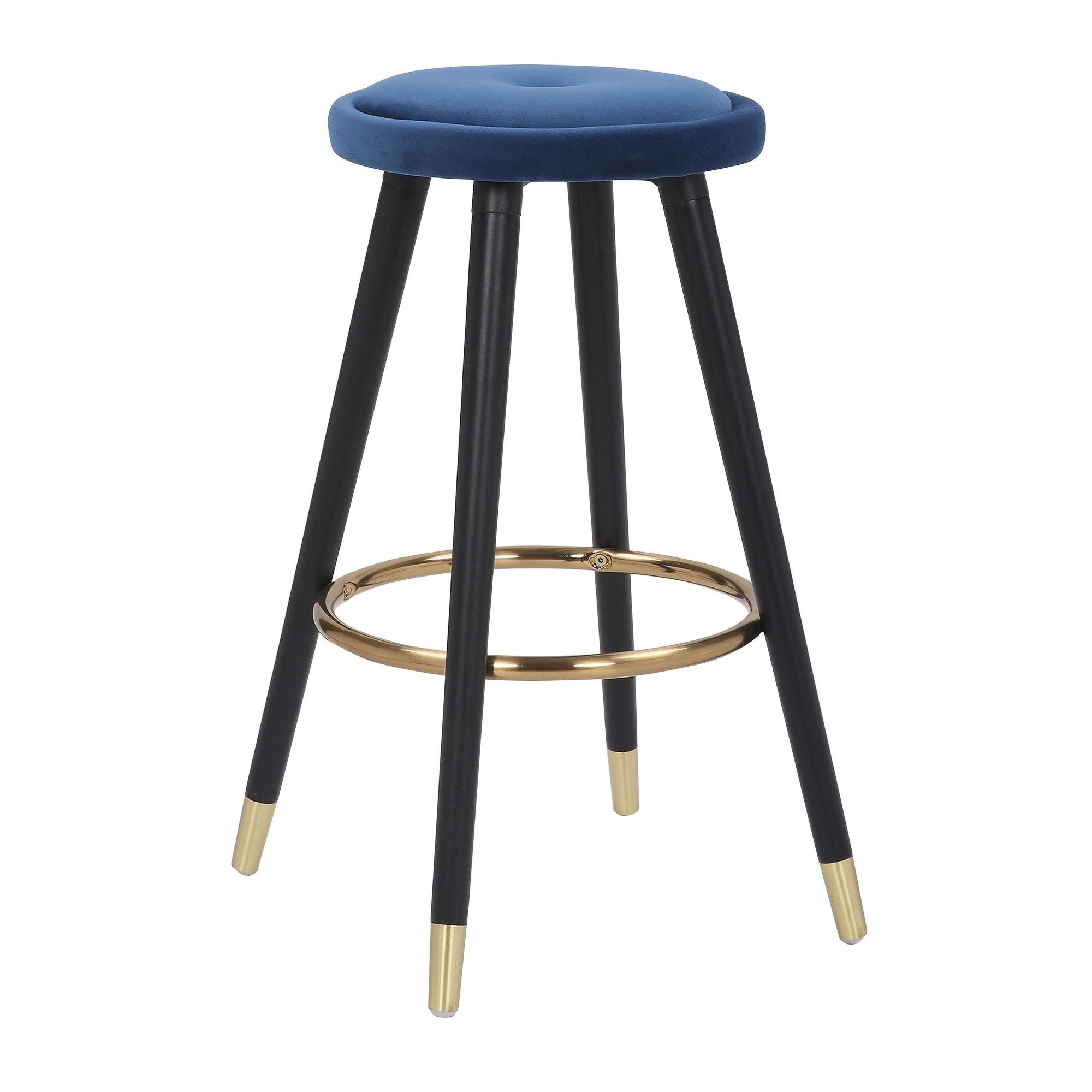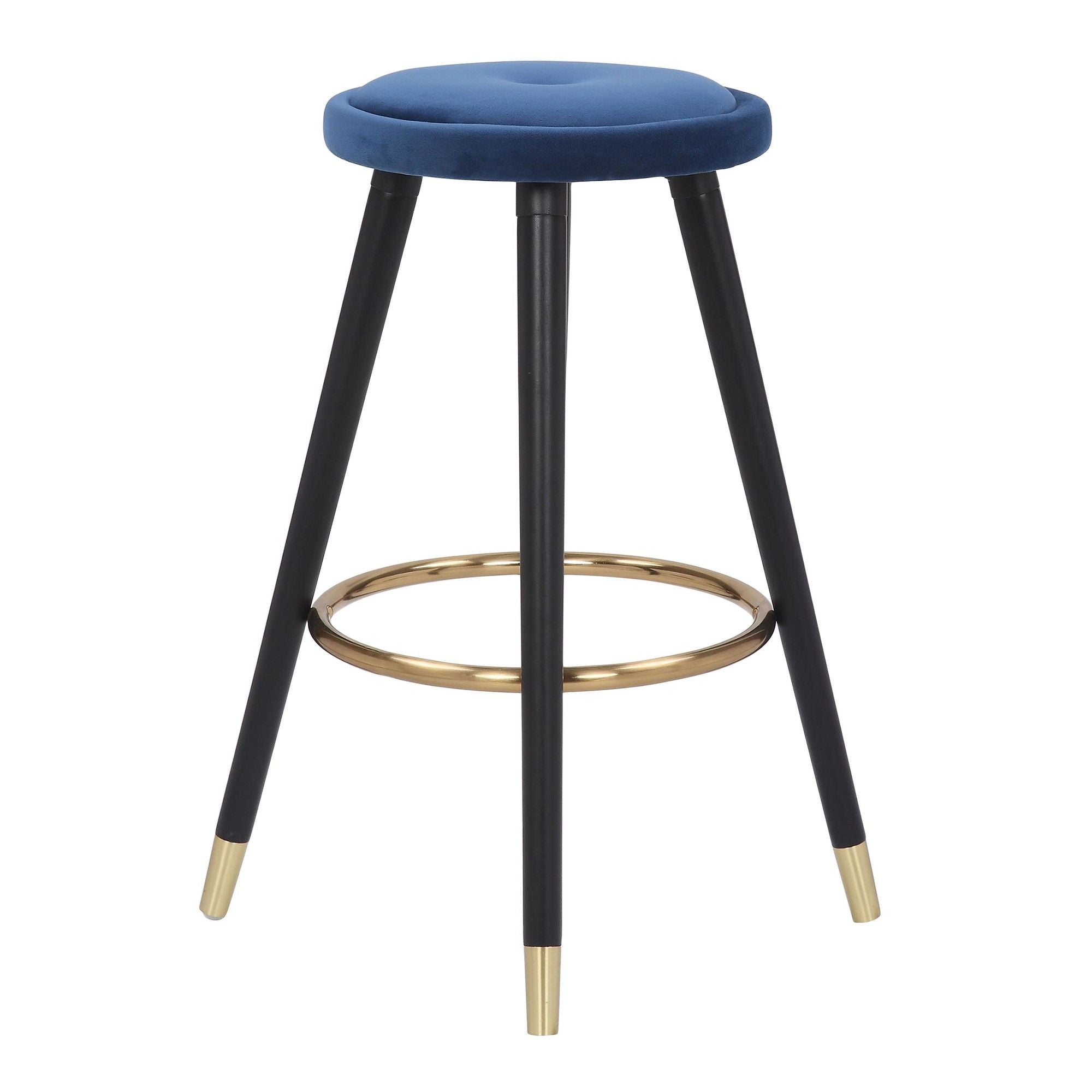 Cavalier - Glam Counter Stool - Black Wood And Blue Velvet With Gold Accent (Set of 2)