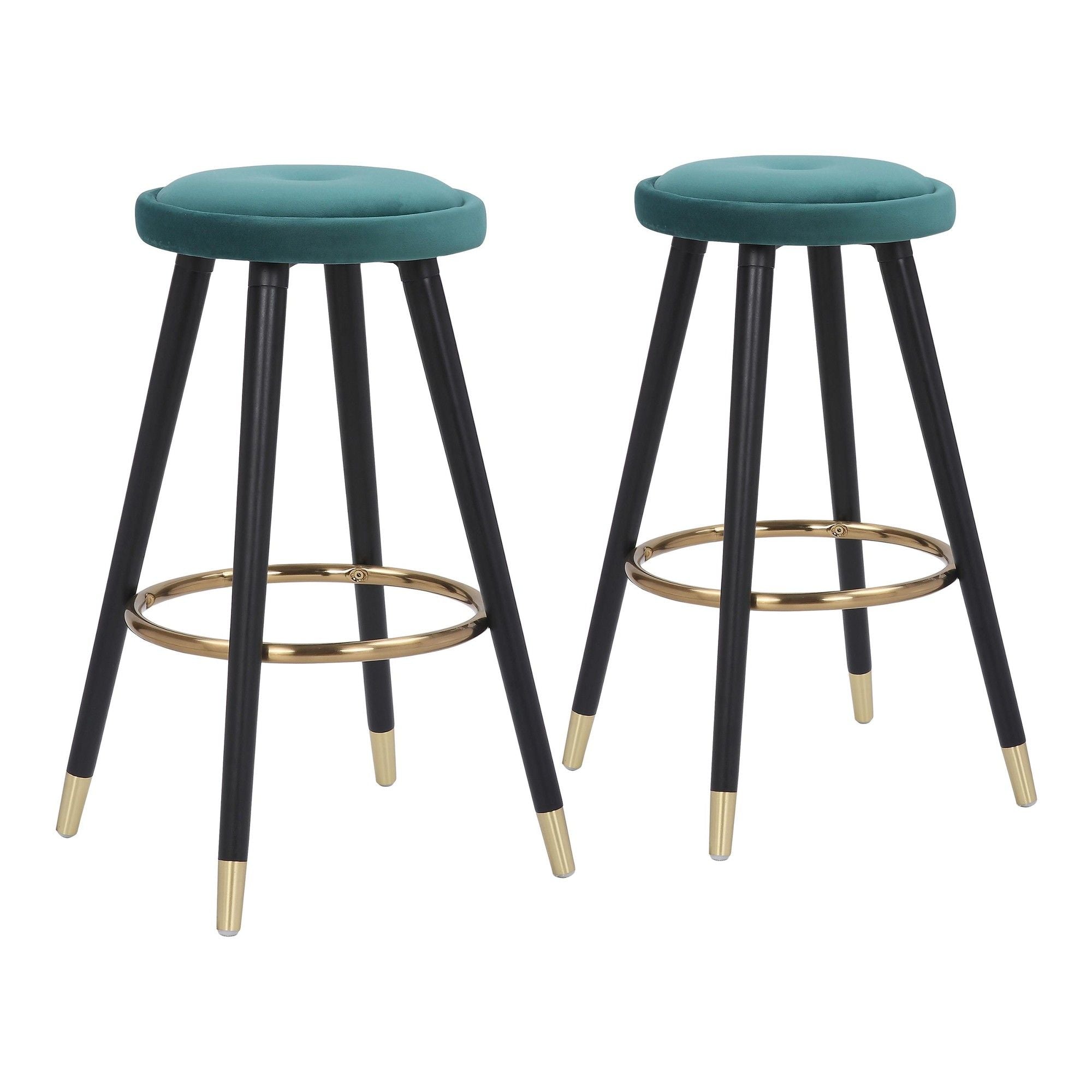 Cavalier - Glam Counter Stool - Black Wood And Green Velvet With Gold Accent (Set of 2)