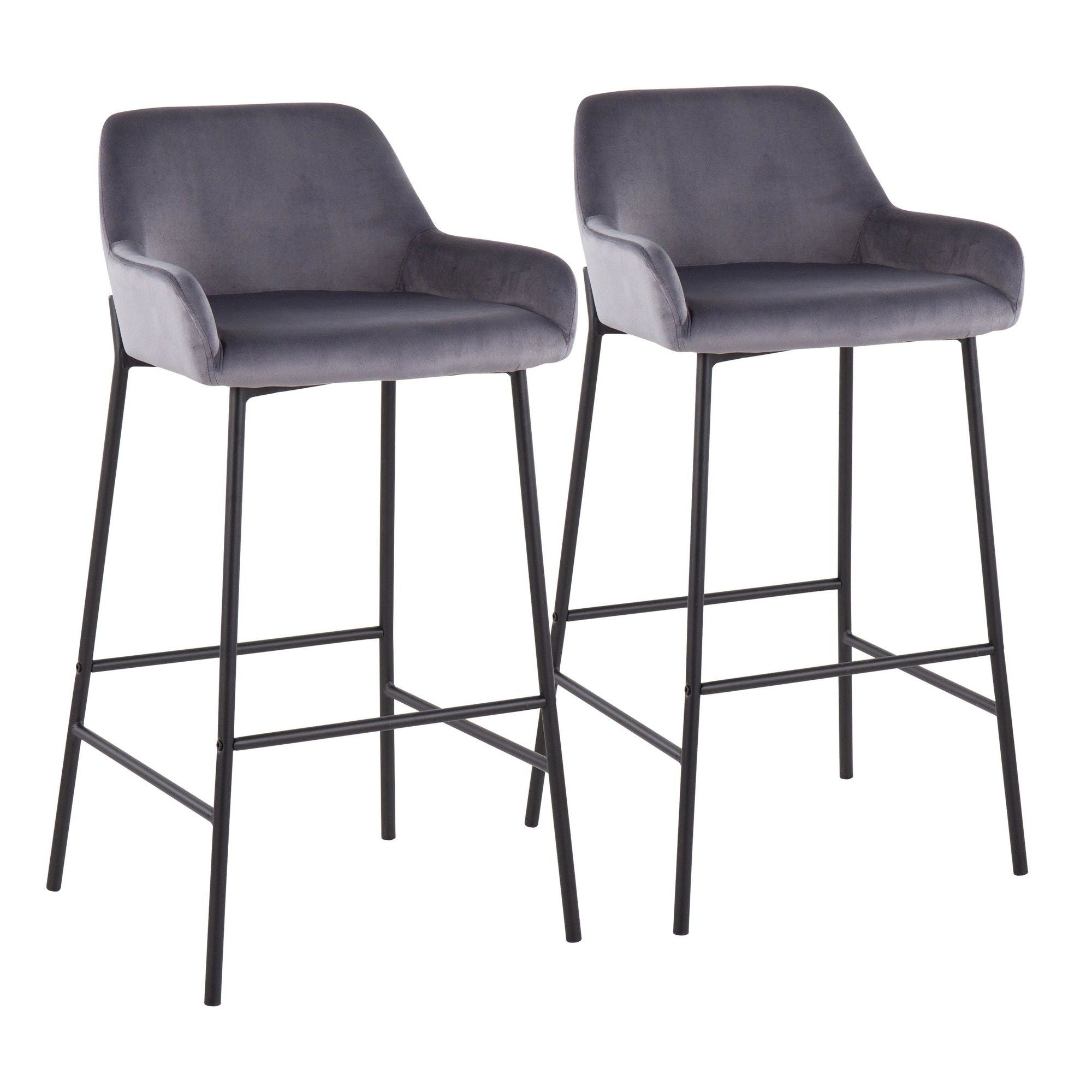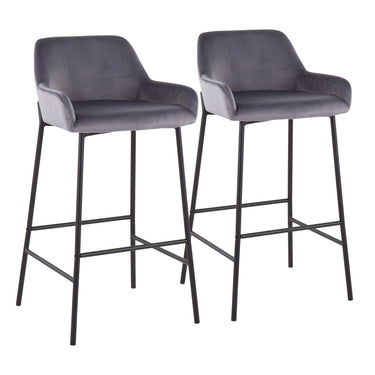 Daniella - Fixed - Height Bar Stool - Black Metal And Silver Velvet (Set of 2)