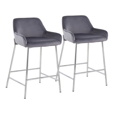 Daniella - Fixed - Height Counter Stool - Chrome Metal And Silver Velvet (Set of 2)