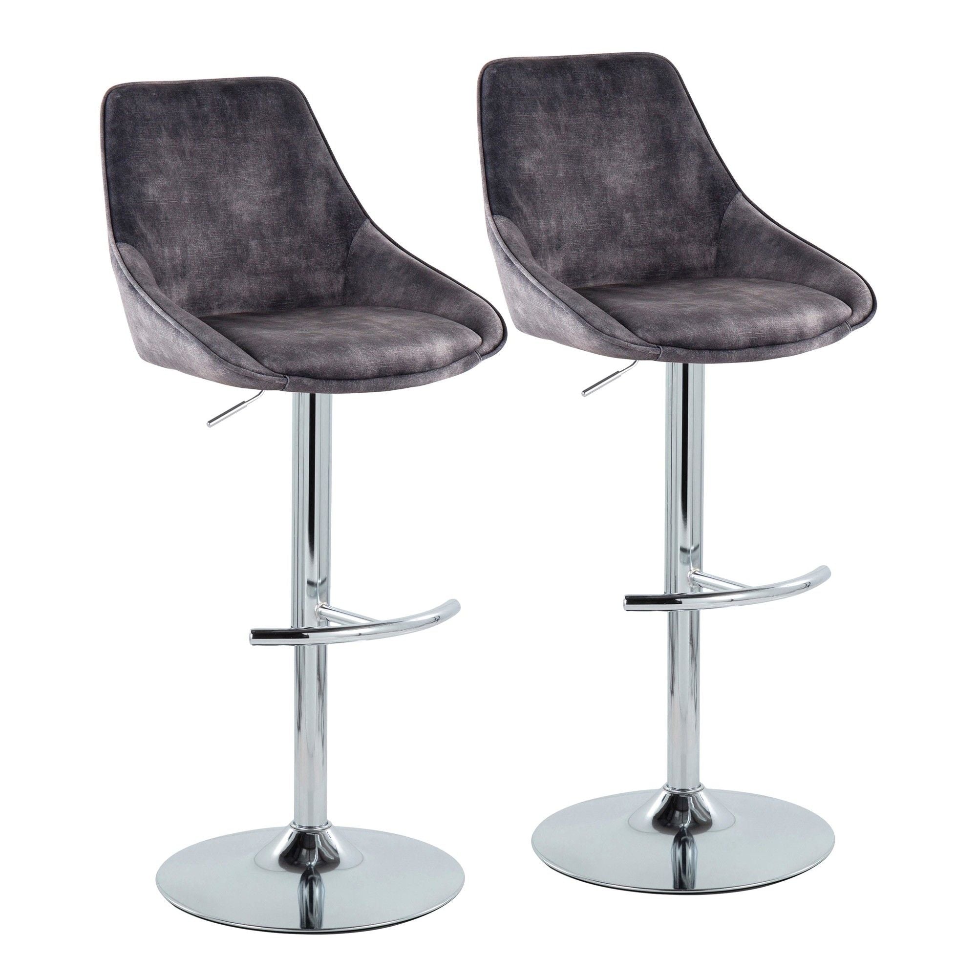 Diana - Adjustable Bar Stool - Chrome With Rounded T Footrest And Gray Velvet (Set of 2)