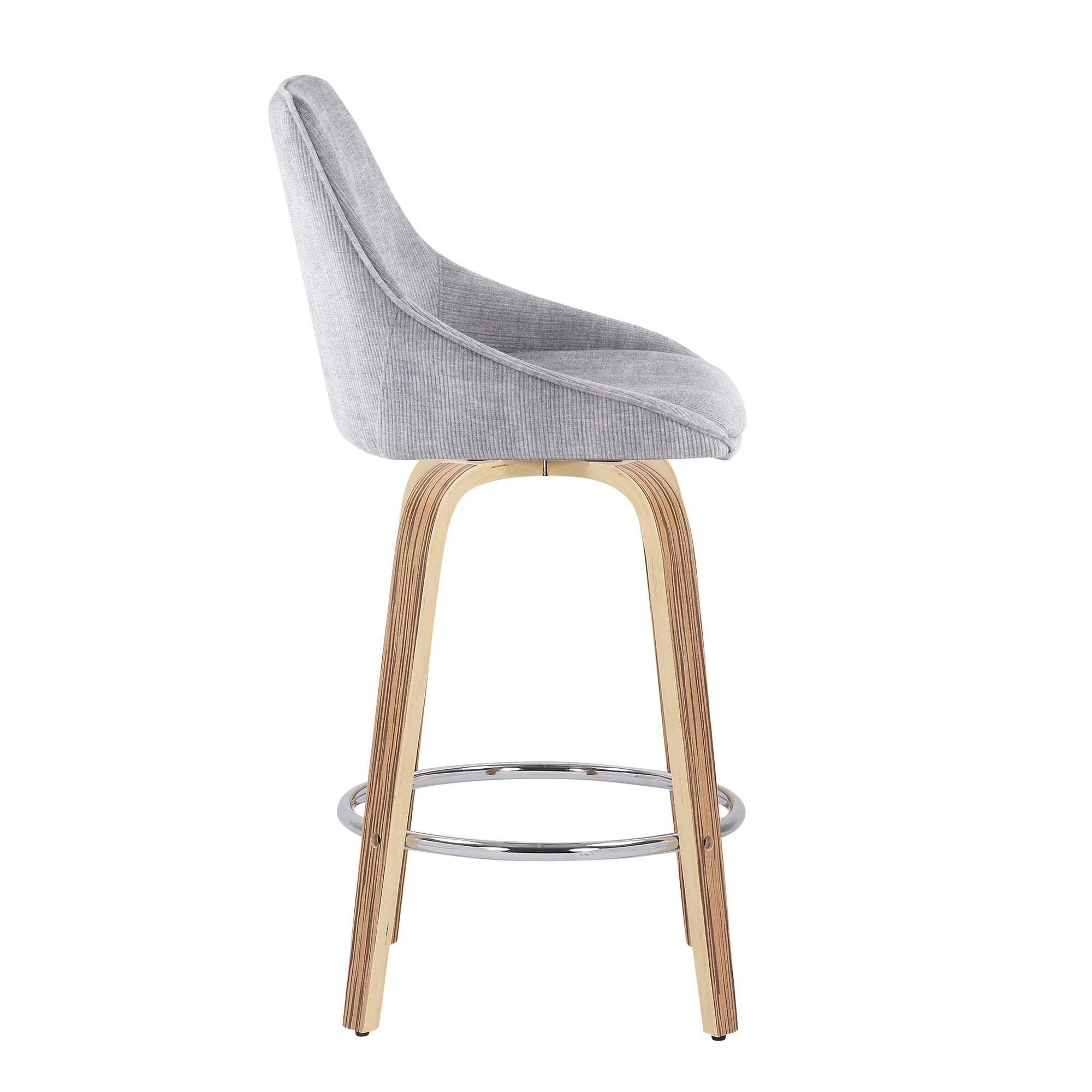 Diana - Fixed - Height Counter Stool - Zebra Wood Legs And Round Chrome Footrest With Gray Corduroy Fabric (Set of 2)