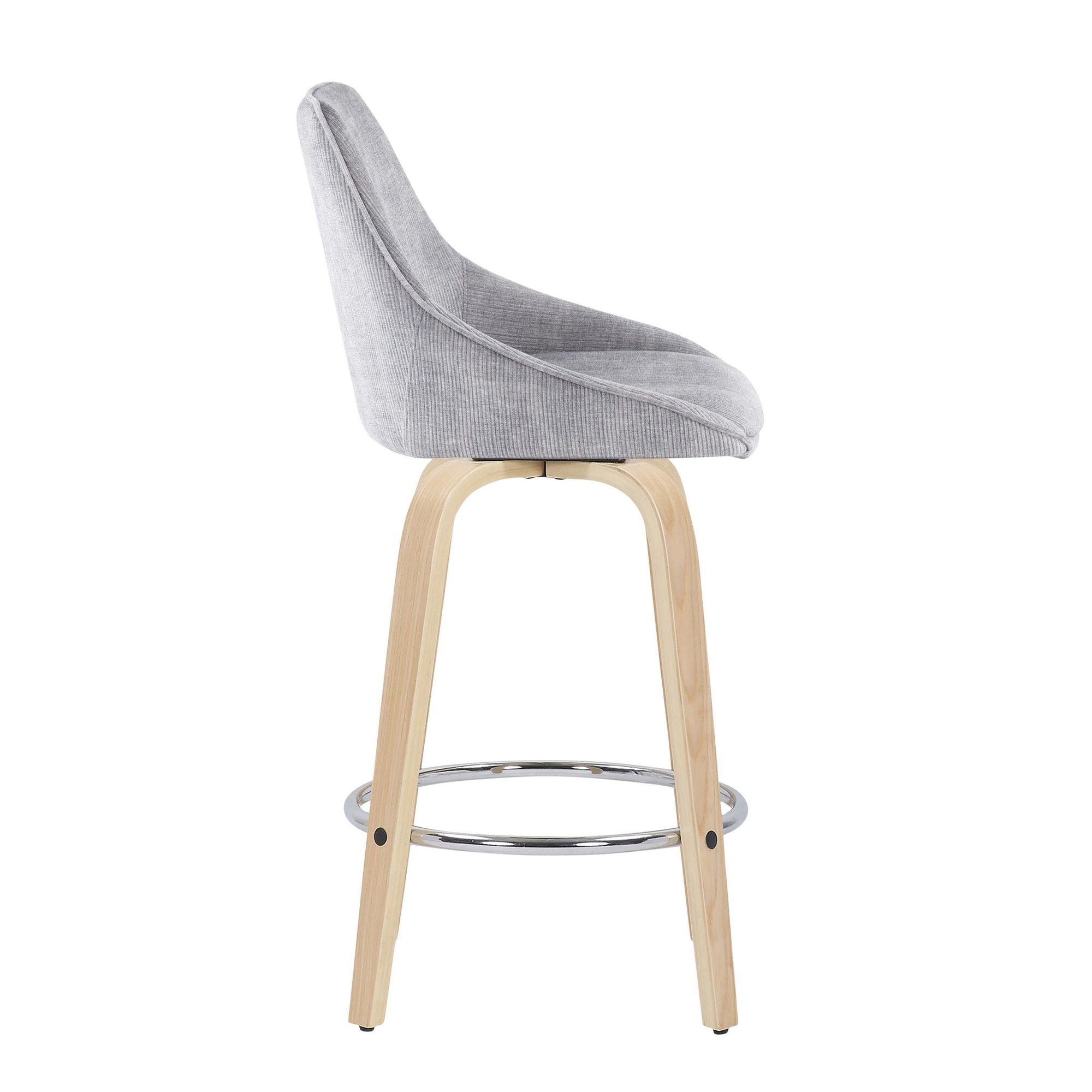 Diana - Fixed - Height Counter Stool - Natural Wood Legs And Round Chrome Footrest With Gray Corduroy Fabric (Set of 2)