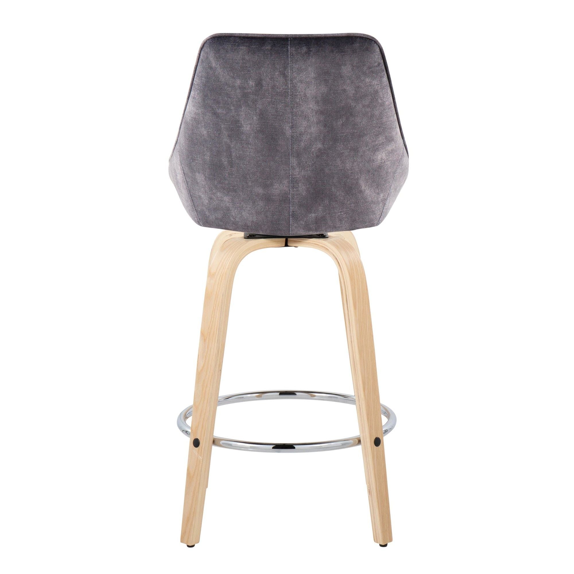 Diana - Fixed - Height Counter Stool - Natural Wood Legs And Round Chrome Footrest With Gray Velvet Fabric (Set of 2)