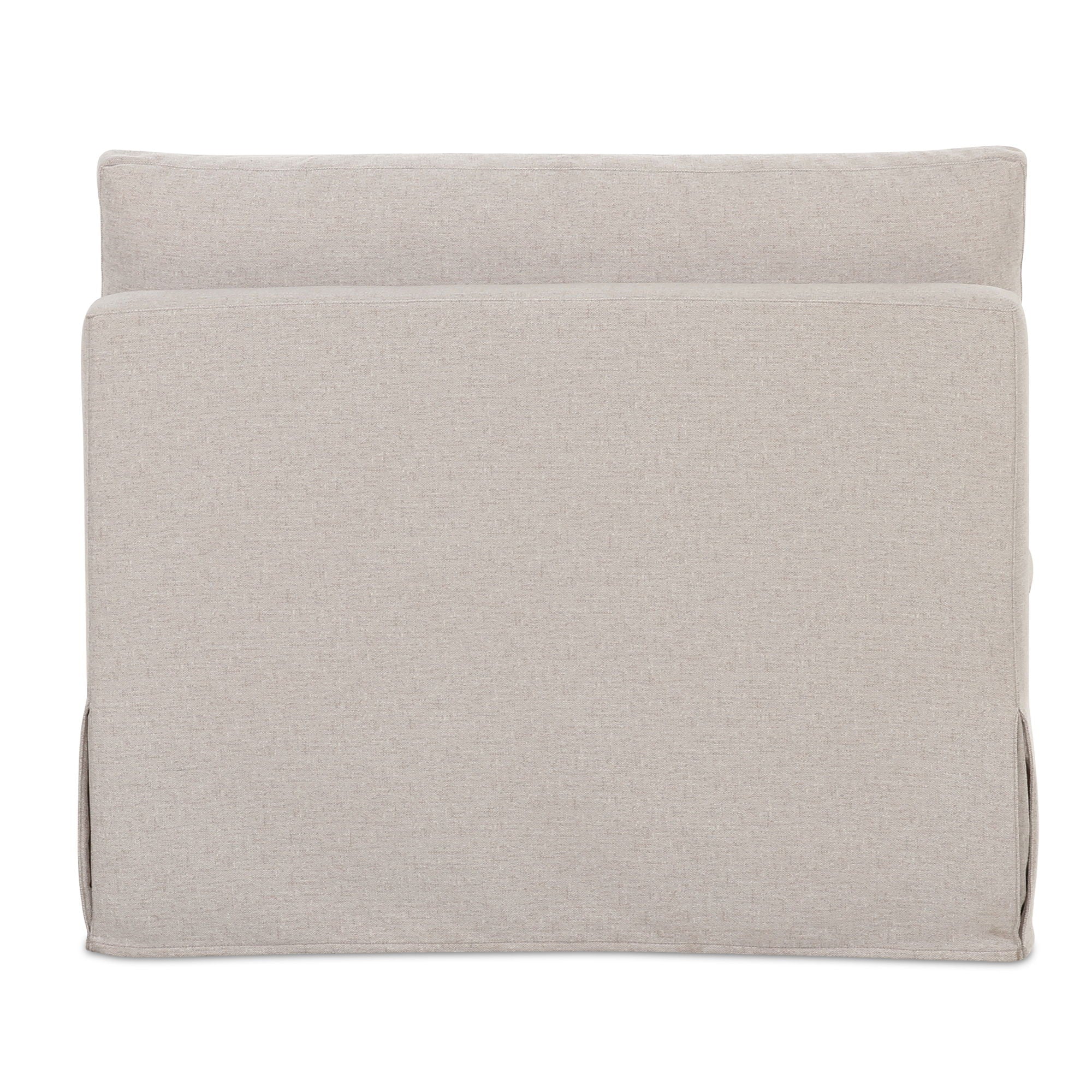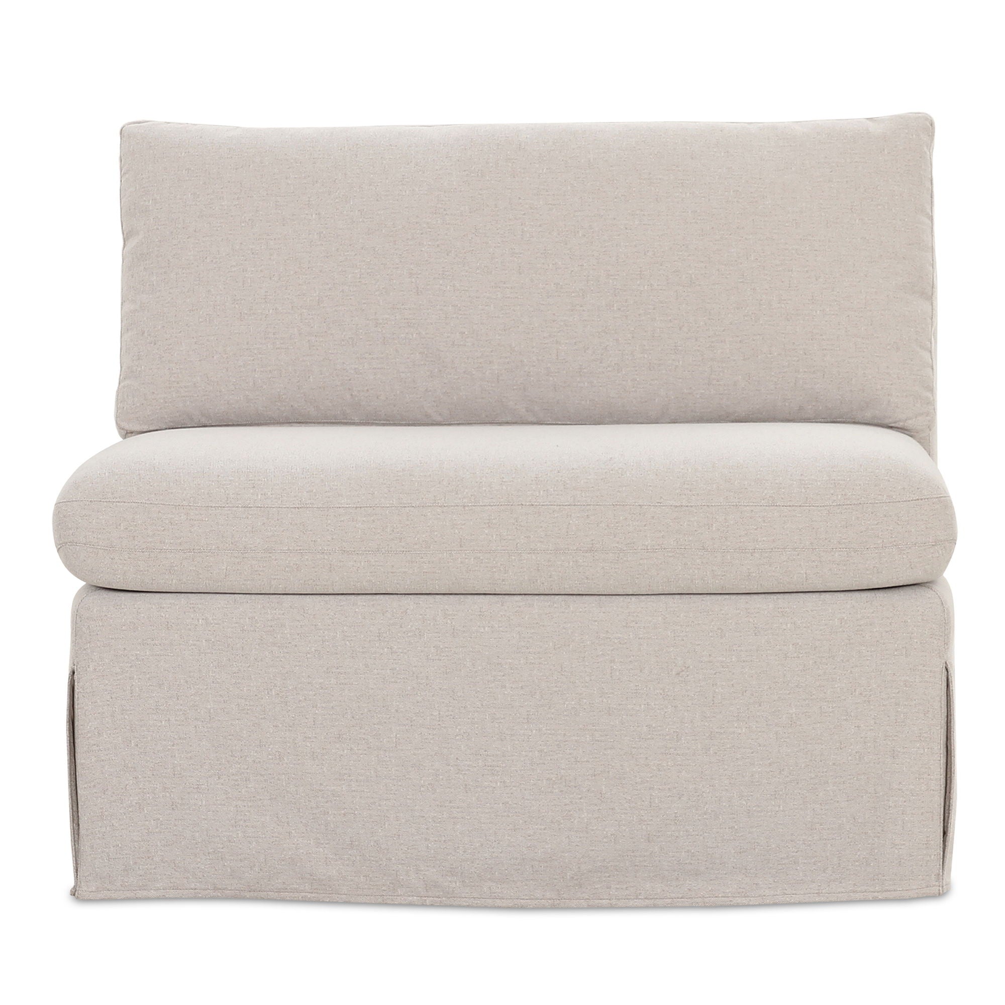 The Fable slipcover dining chair and a half's snug-fitting, washable slipcover with inverted pleats offers a tidy appearance and effortless upkeep. A slight tilt encourages a relaxed seating posture with a pillow back and seat cushions for comfort. Designed to be modular, it includes alligator clips to connect with other pieces in the collection, adapting seamlessly to various dining table sizes.