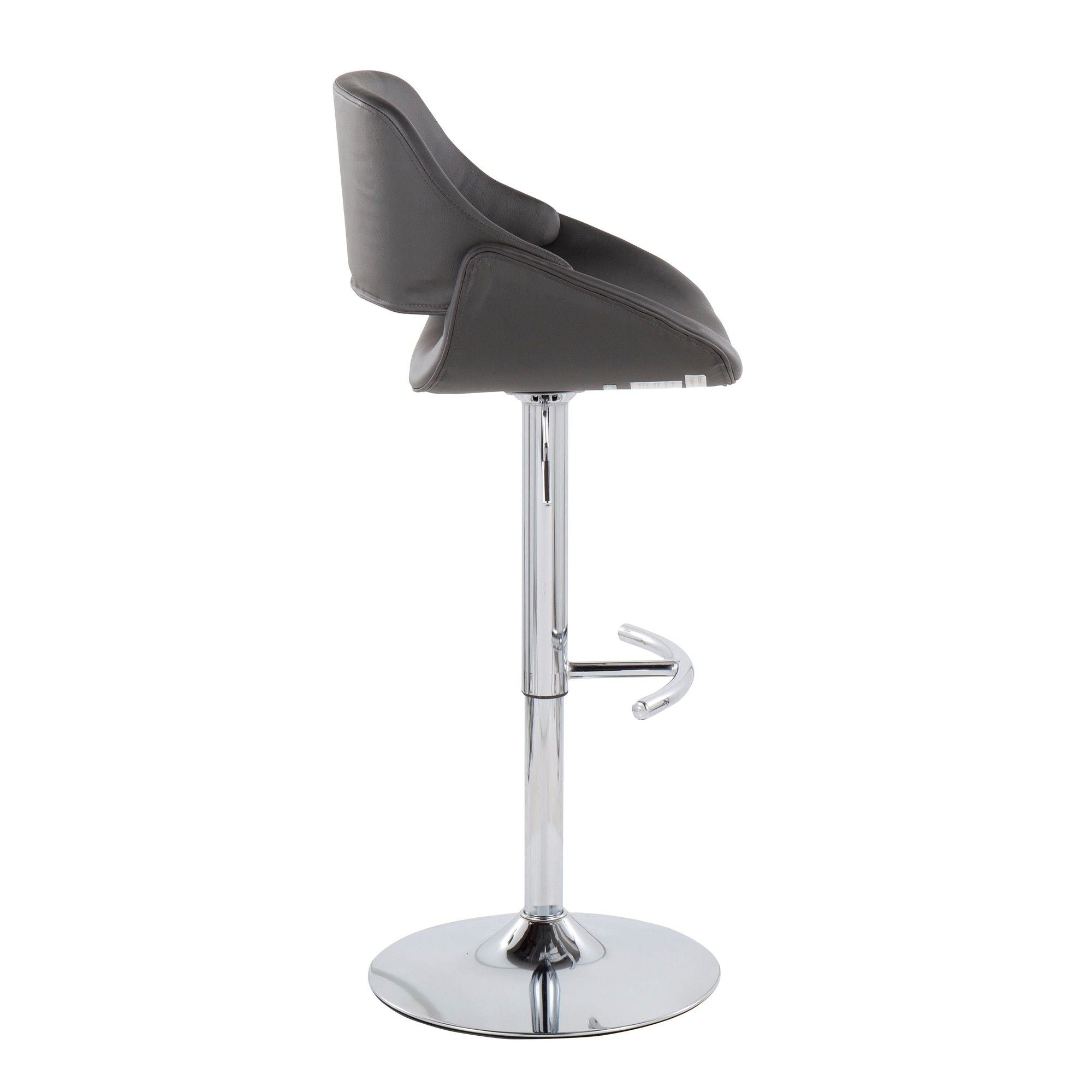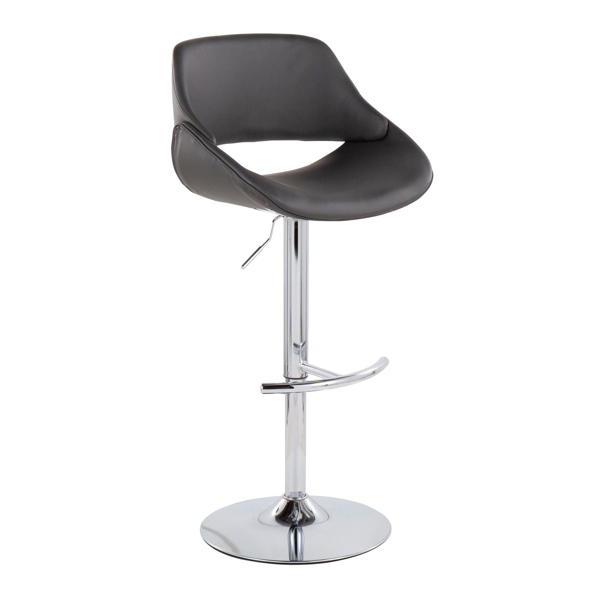 The wide and welcoming seat of the LumiSource Fabrico Adjustable Bar Stool beckons one to sit and relax. A curved back and contoured upholstered seat is accented by an adjustable chrome base that add to the stylish yet comfortable design. Available in a variety of upholstery colors, choose the one that suits your space best.