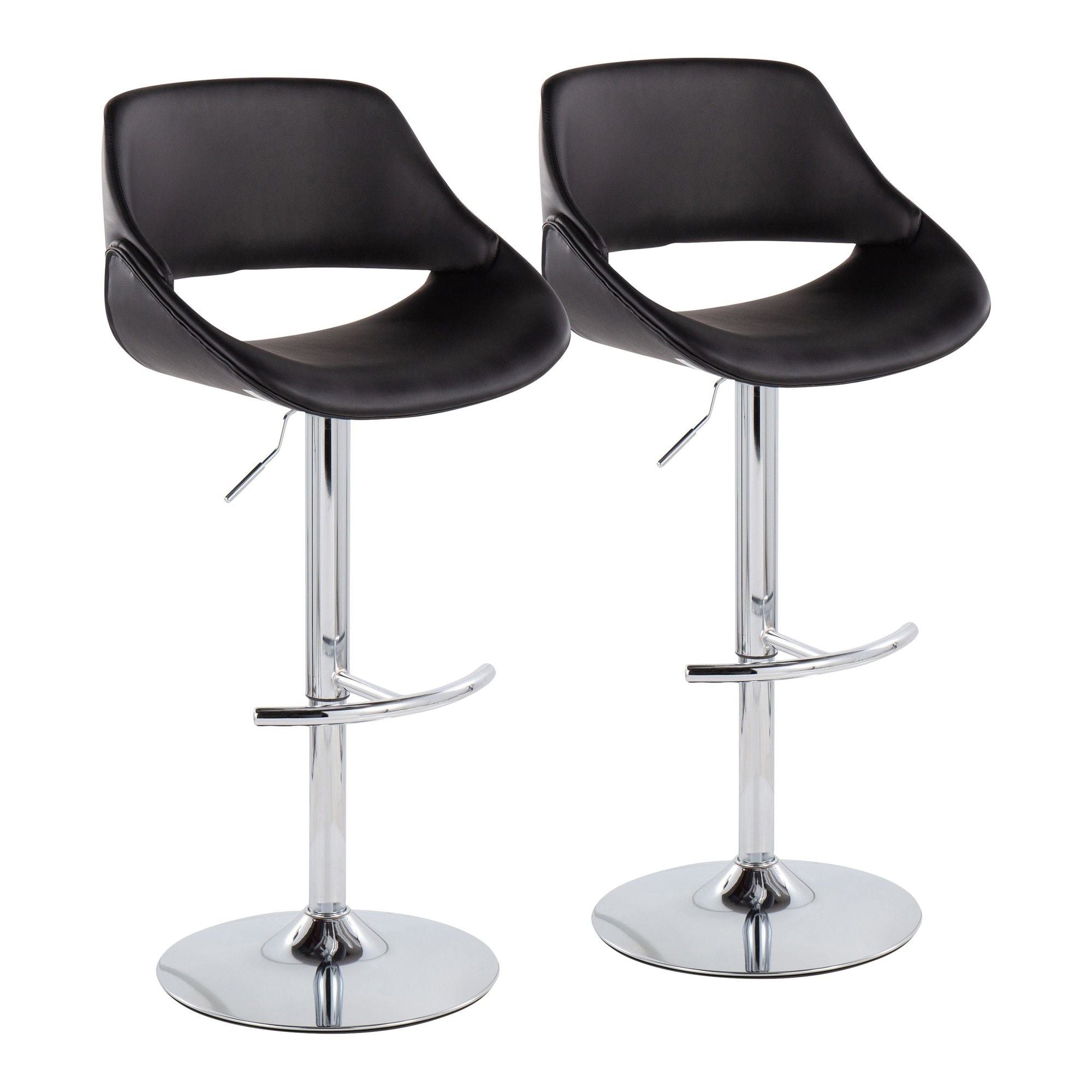 Fabrico - Adjustable Bar Stool - Chrome With Rounded T Footrest And Black Faux Leather (Set of 2)