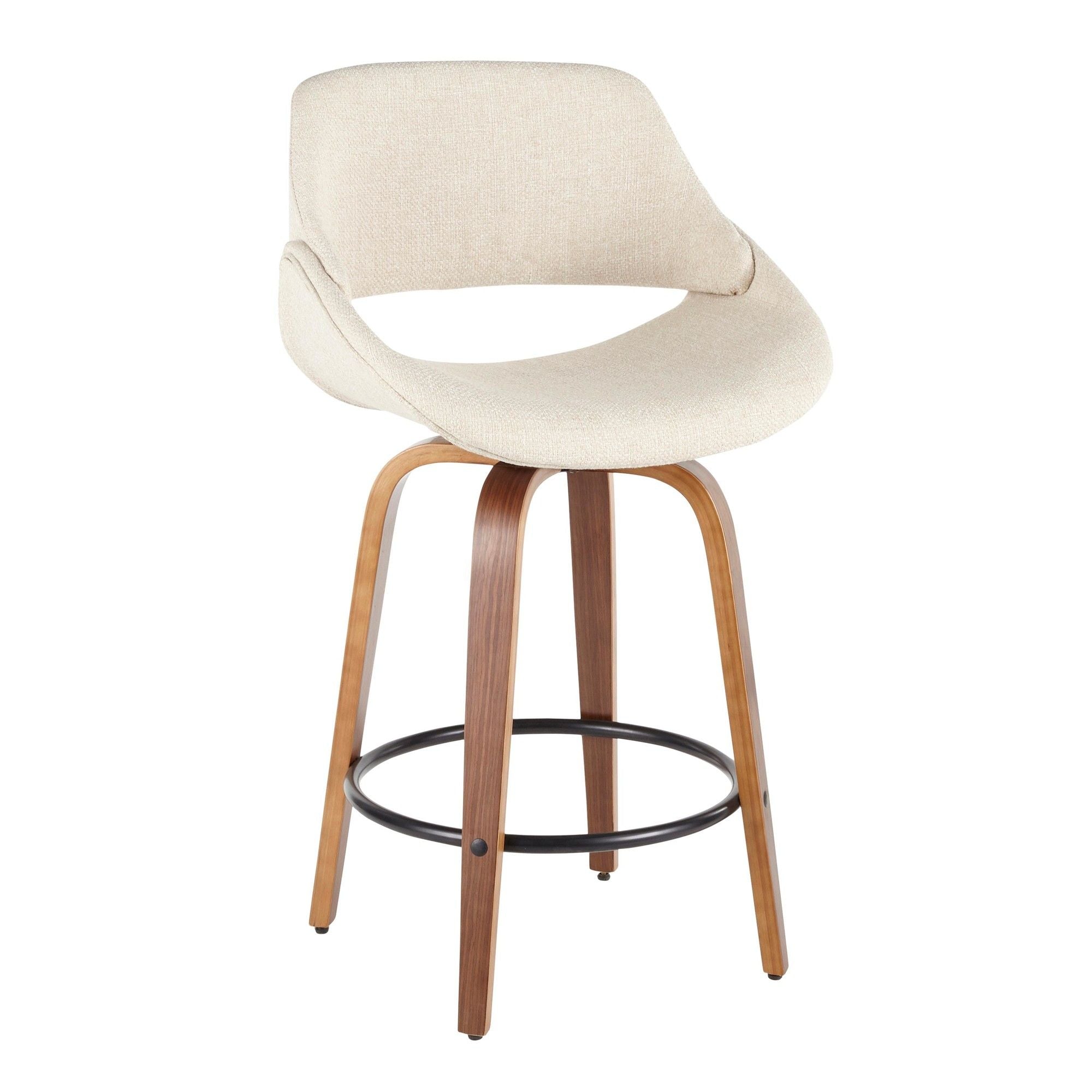 Fabrico - Counter Stool - Walnut And Cream Fabric (Set of 2) - 38"