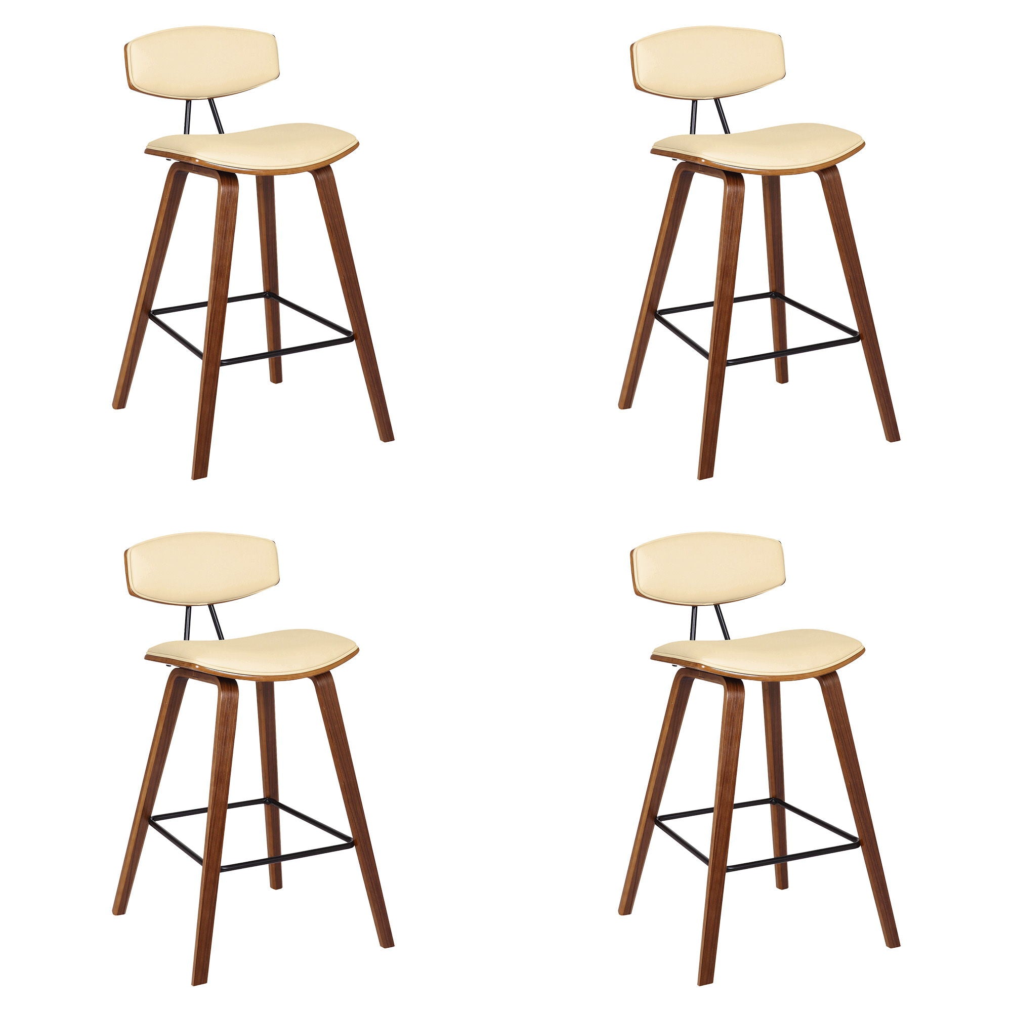 Fox - 25.5" Counter Height Mid-Century Modern Bar Stool (Set of 4) - Cream Faux Leather And Walnut Wood