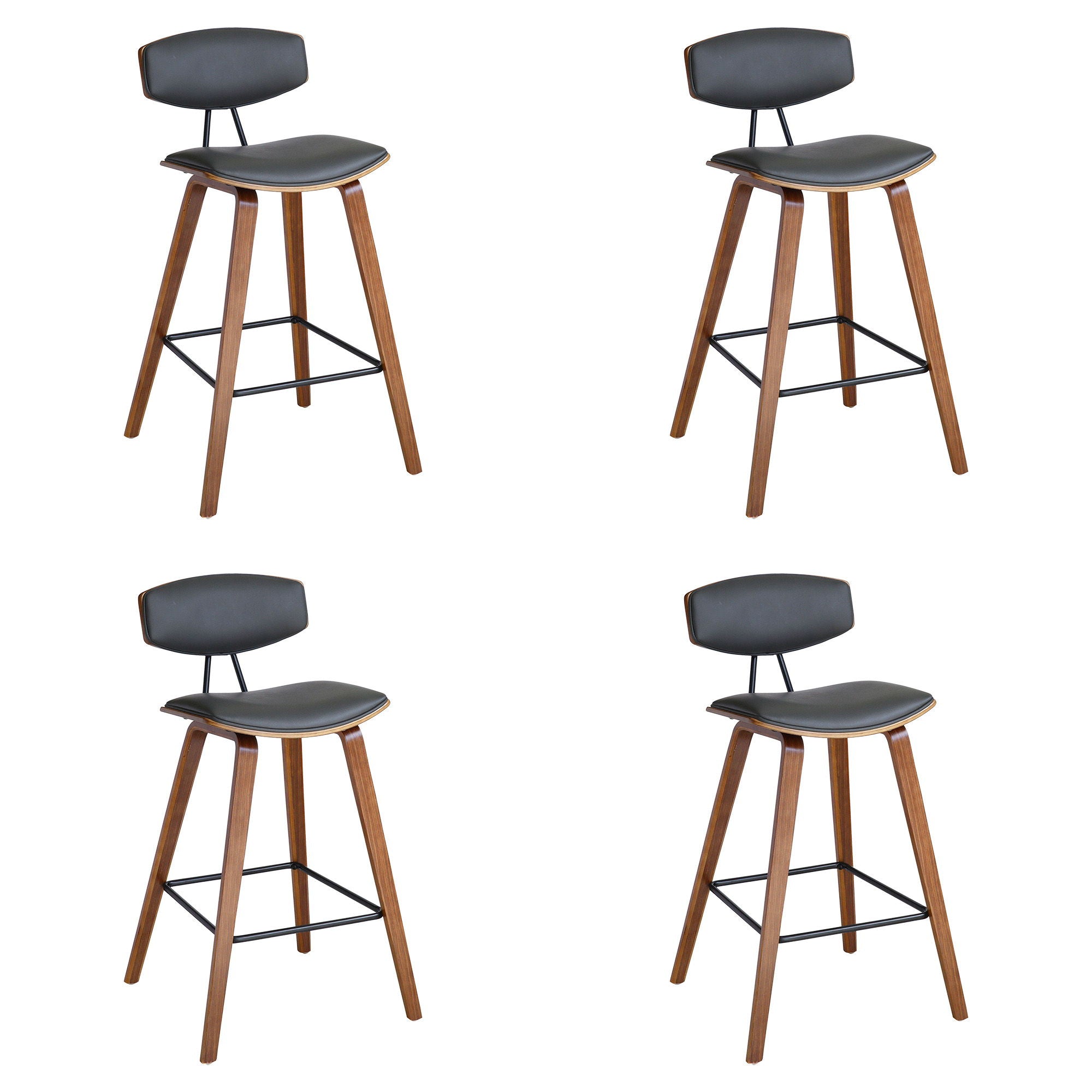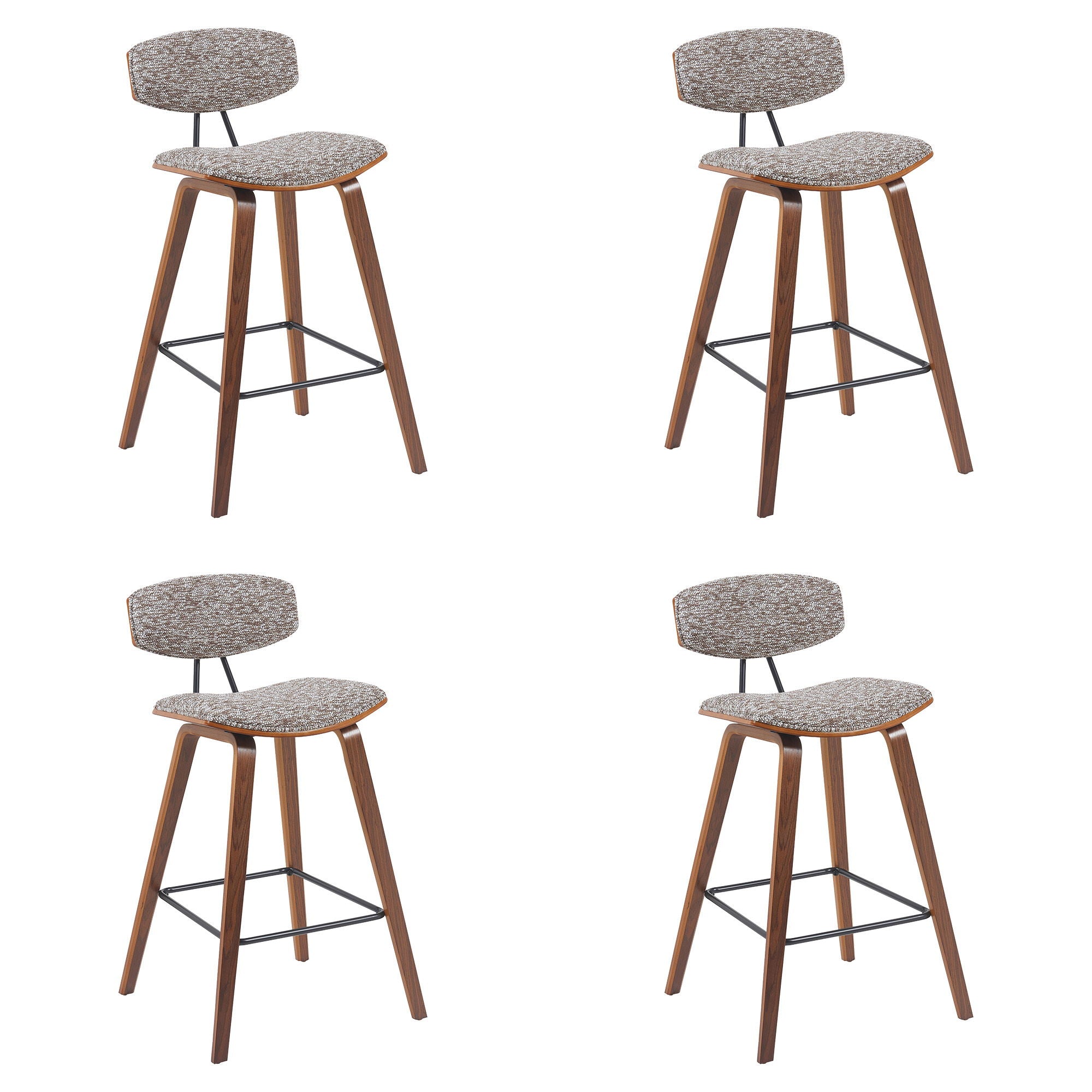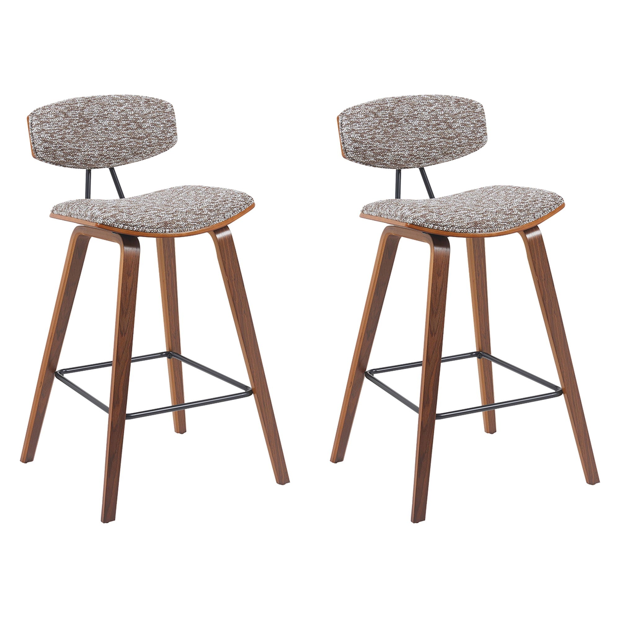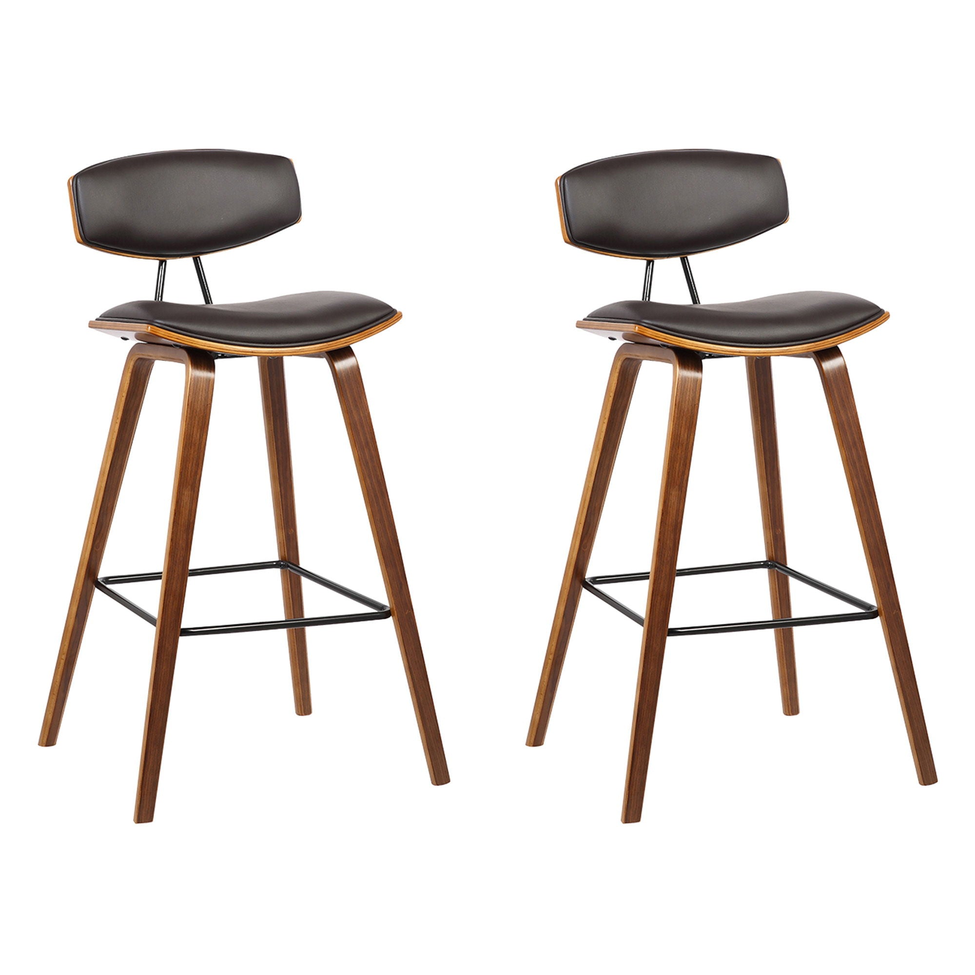 Whether drawn up to a sleek kitchen island for a breakfast nook or rounding out your home bar with a perfect perch, a bar stool like this is a versatile seating solution with sleek modern style. The Armen Living Fox Mid-Century Modern Bar Stool is a sophisticated and functional modern piece certain to enhance the aesthetic of any style home or apartment. The high-density foam cushioned back, and seat will allow endless hours of entertaining or lounging. The curved wood medium high back with padded support is ideal for posture alignment and an unmatched support for days on end. The foundation of the product is supported by wood and steel footrest for a chic and stylish aesthetic without comprising practicality and functionality of this item. The Mid-Century Modern style silhouette gives you a timeless look with the durability to last for many years to come.You can easily incorporate this stool into your kitchen, dining room, home bar, or office!