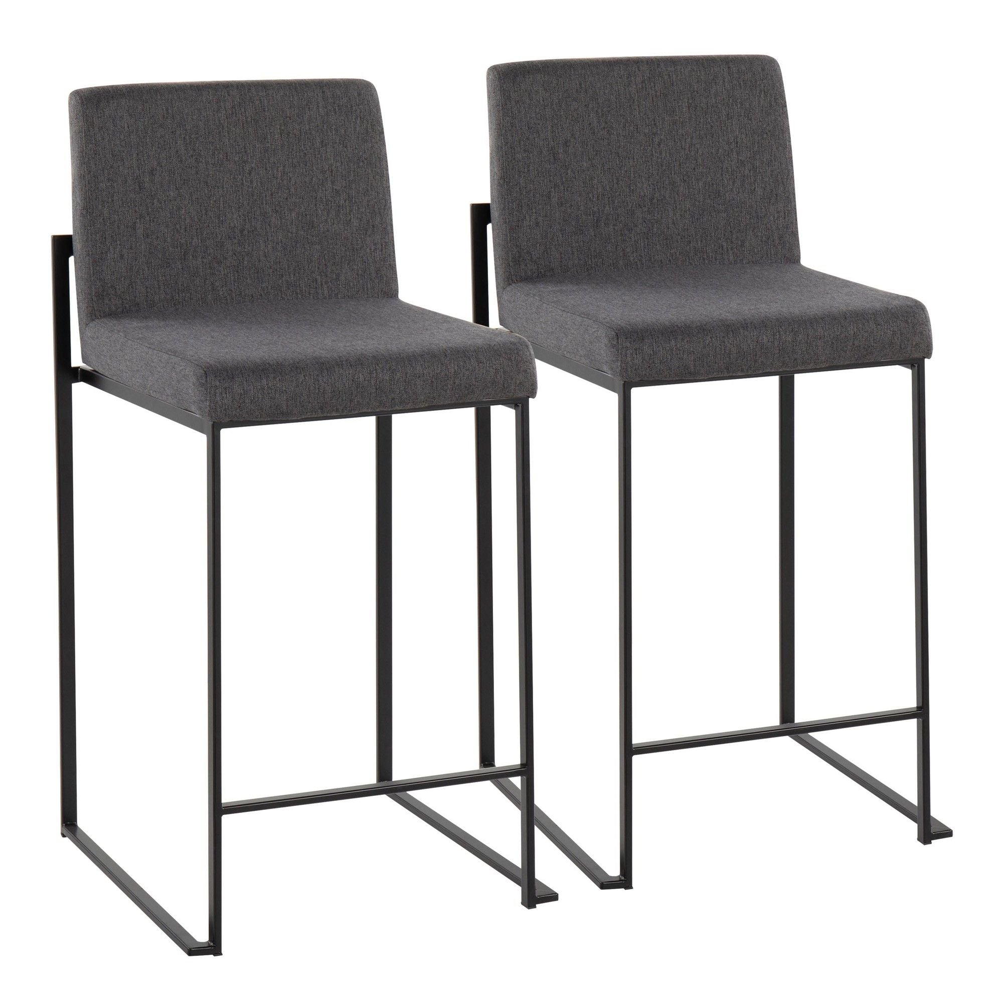 Fuji - High Back Counter Stool - Black Steel And Charcoal Fabric (Set of 2)