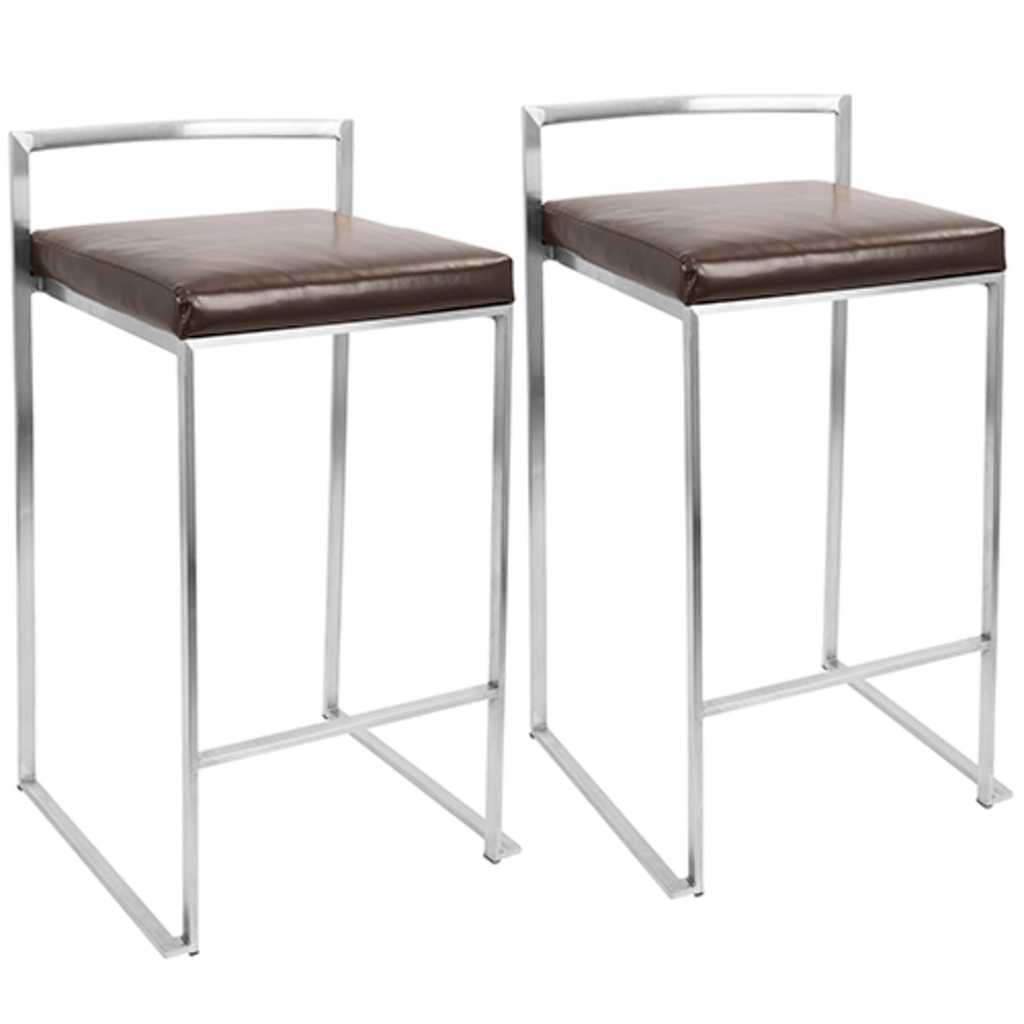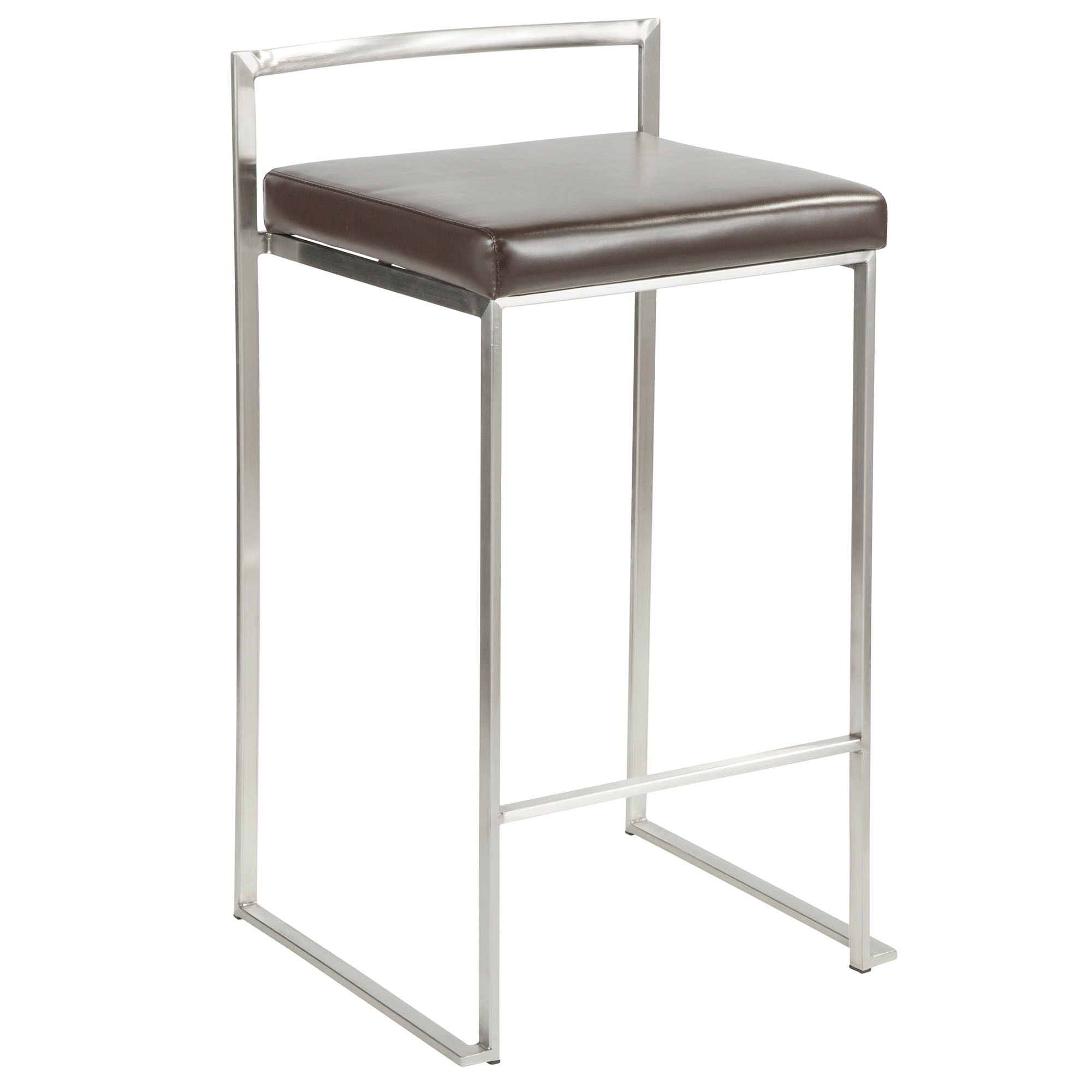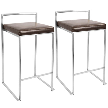 Fuji - Stackable Counter Stool - Brown Faux Leather (Set of 2)
