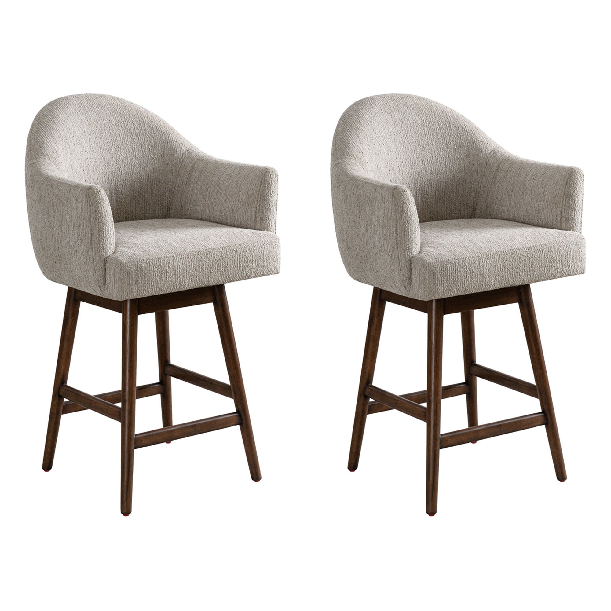 Jaxon - Brown Solid Wood Upholstered 26" Counter Height Swivel Barstool (Set of 2) - Morning Fog Fabric Seat
