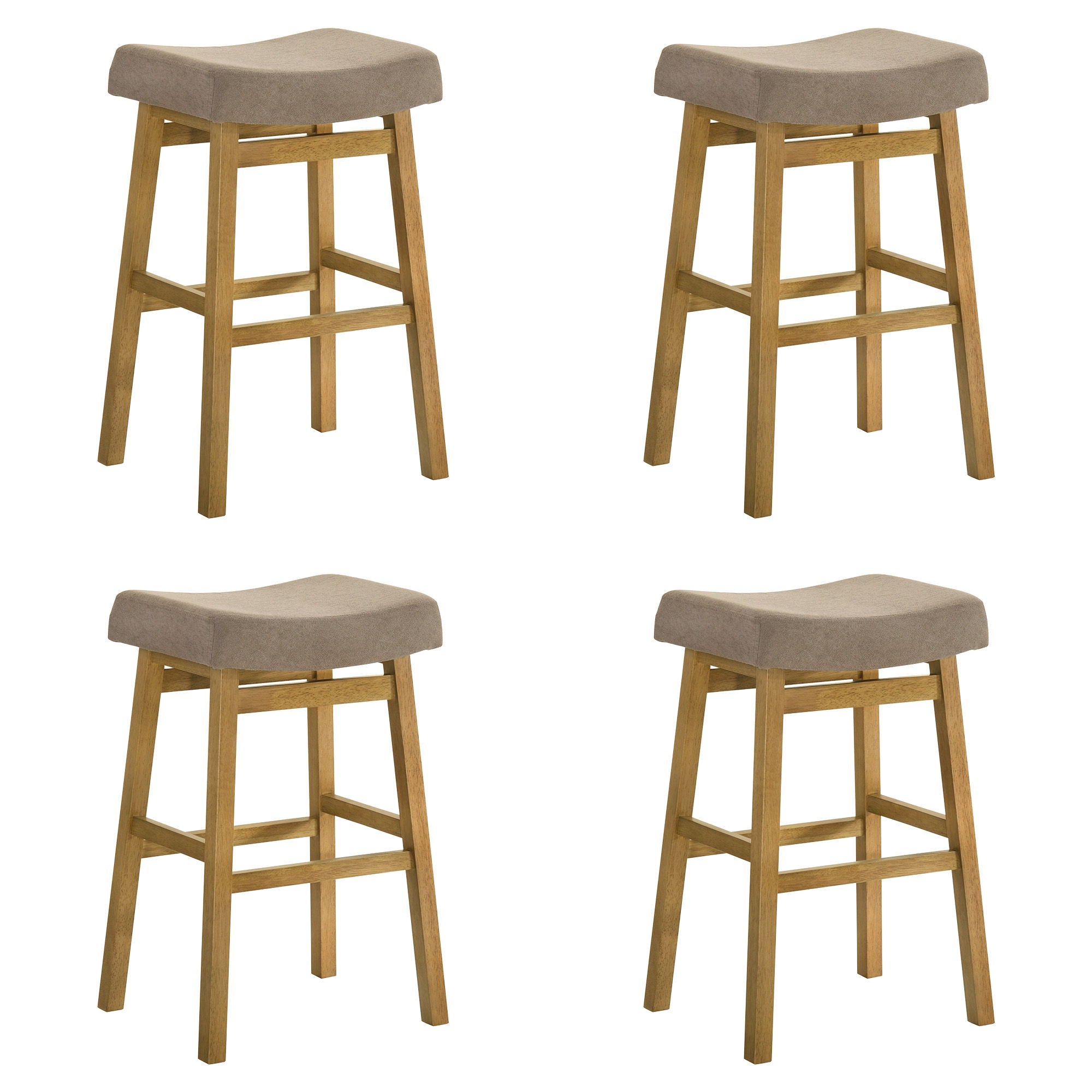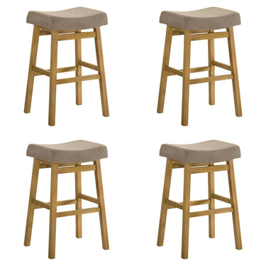 Lenon - Modern Farmhouse Wood Bar Height Kitchen Bar Stool (Set of 4) - Amber Glow Finish With Taupe Fabric Upholstered Seat