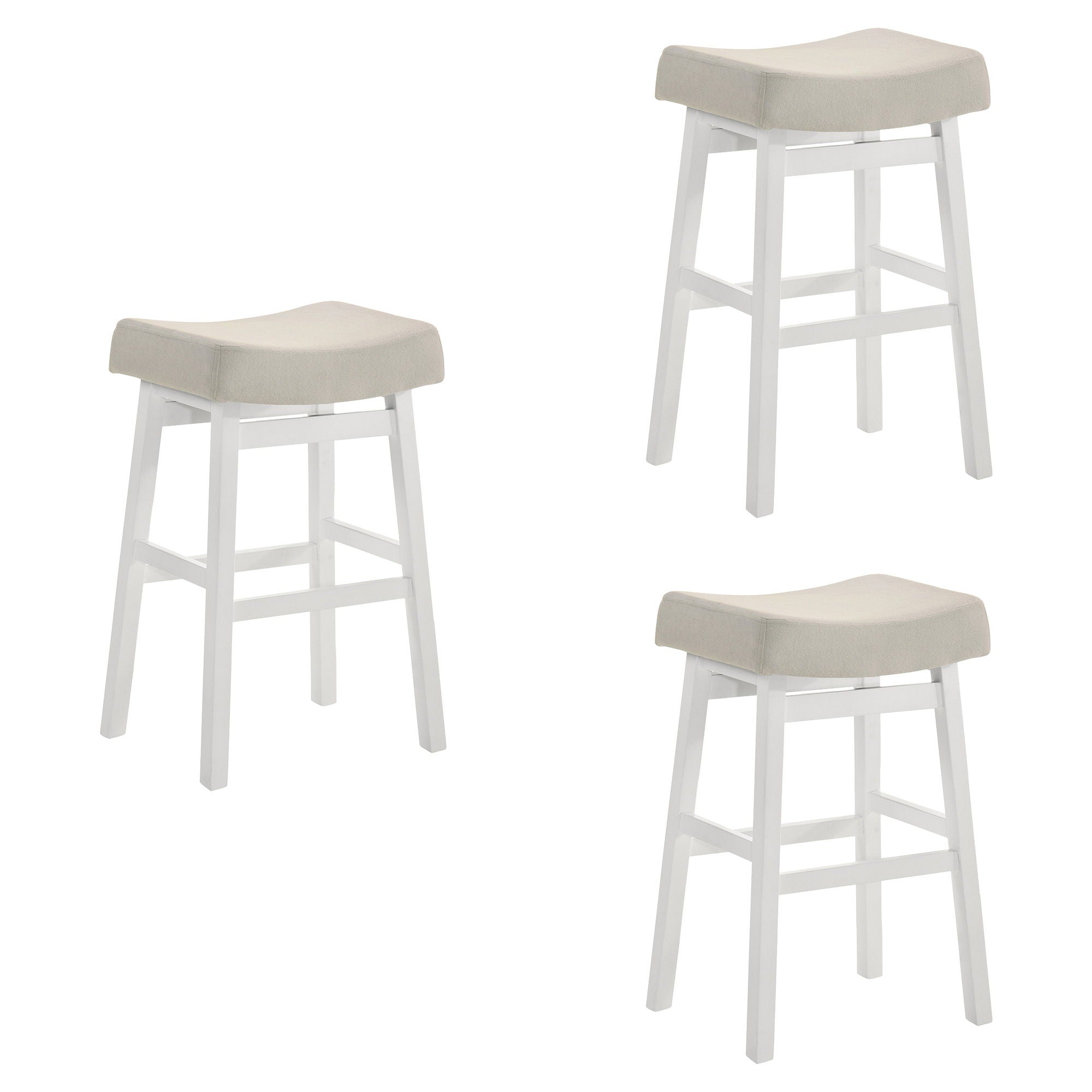 Lenon - Modern Farmhouse Wood Bar Height Kitchen Bar Stool (Set of 3) - White Finish With Cream Fabric Upholstered Seat