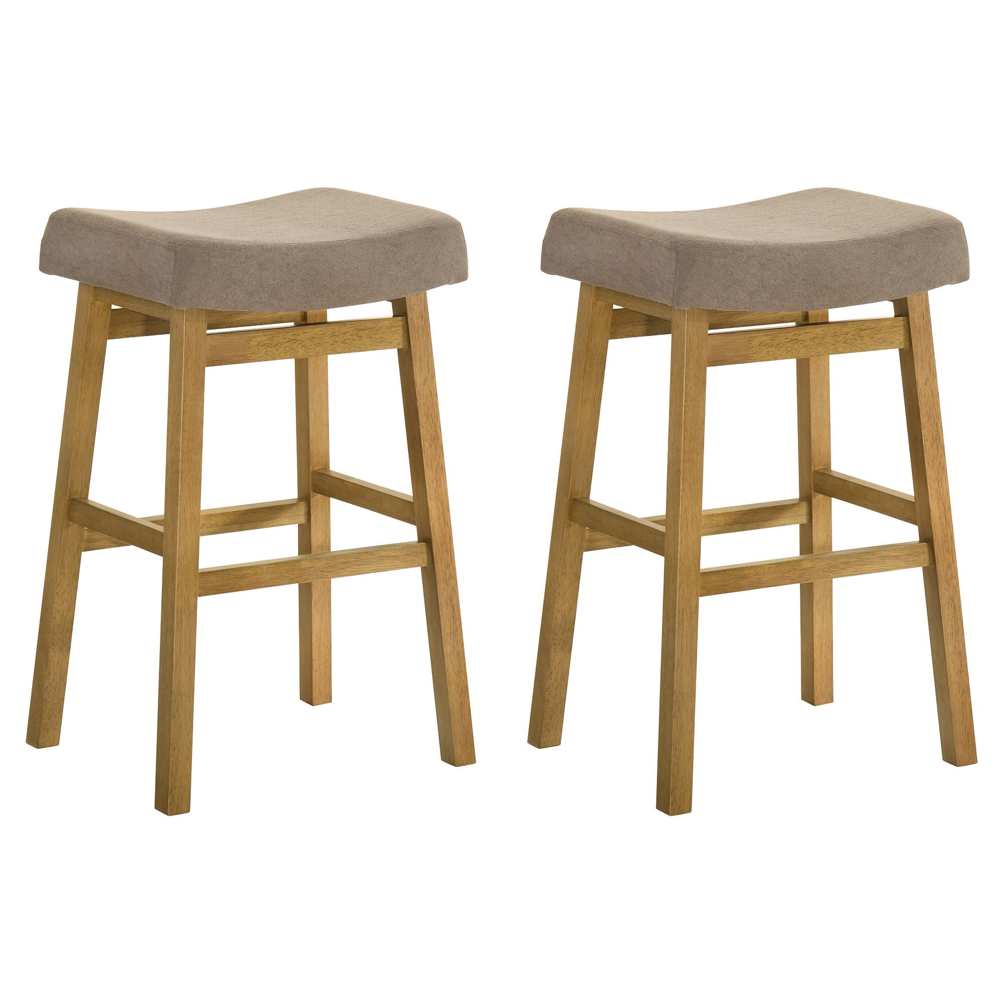 Lenon - Modern Farmhouse Wood Bar Height Kitchen Bar Stool (Set of 2) - Amber Glow Finish With Taupe Fabric Upholstered Seat