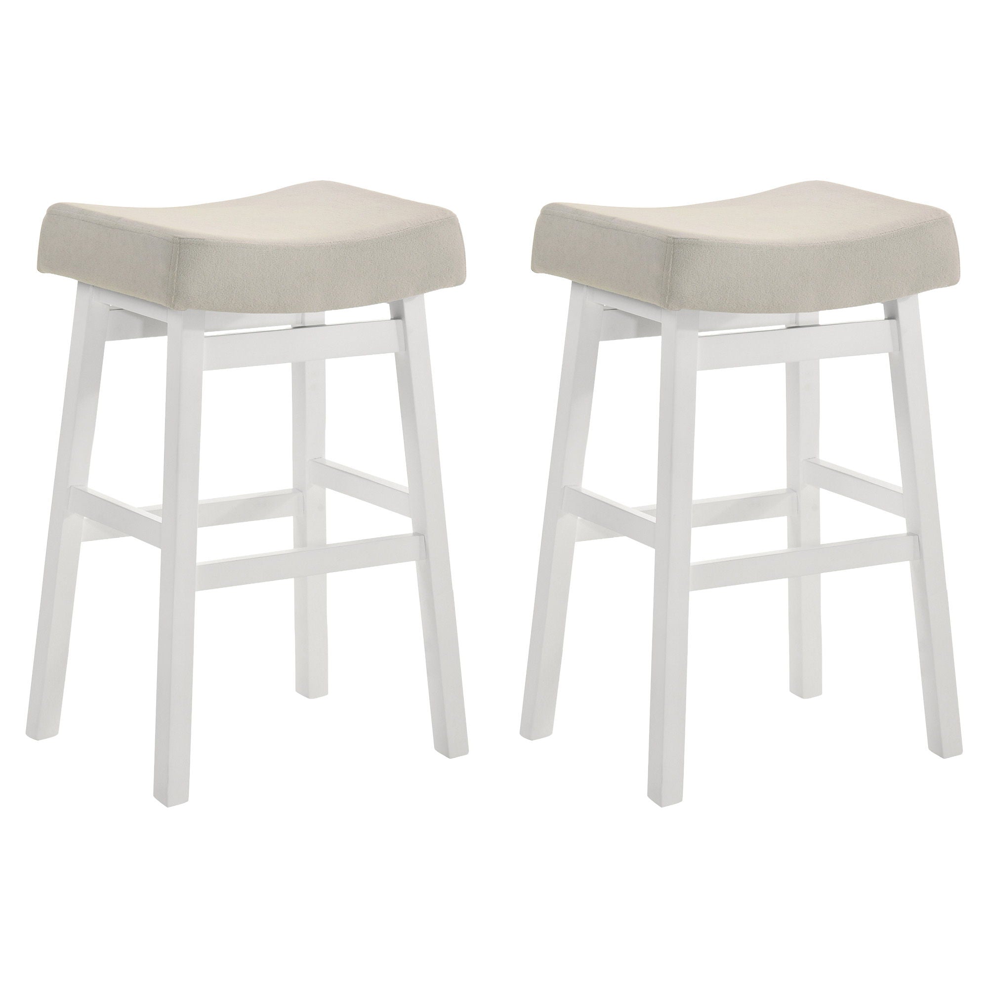 Lenon - Modern Farmhouse Wood Bar Height Kitchen Bar Stool (Set of 2) - White Finish With Cream Fabric Upholstered Seat