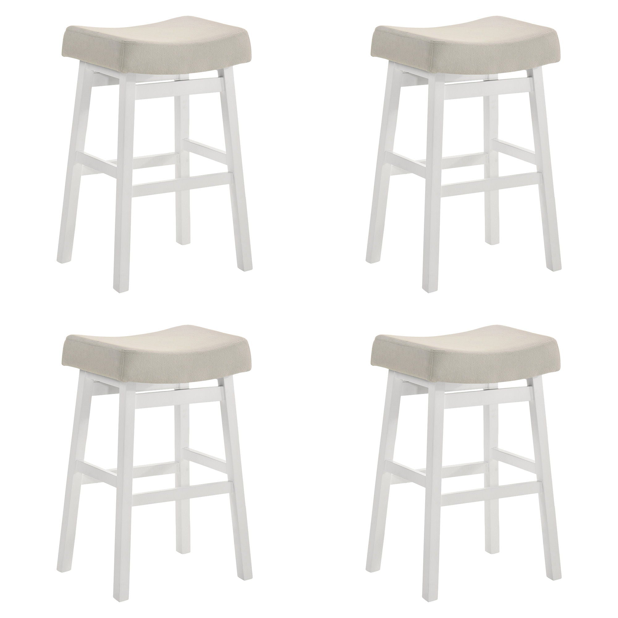 Lenon - Modern Farmhouse Wood Bar Height Kitchen Bar Stool (Set of 4) - White Finish With Cream Fabric Upholstered Seat