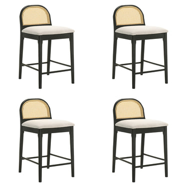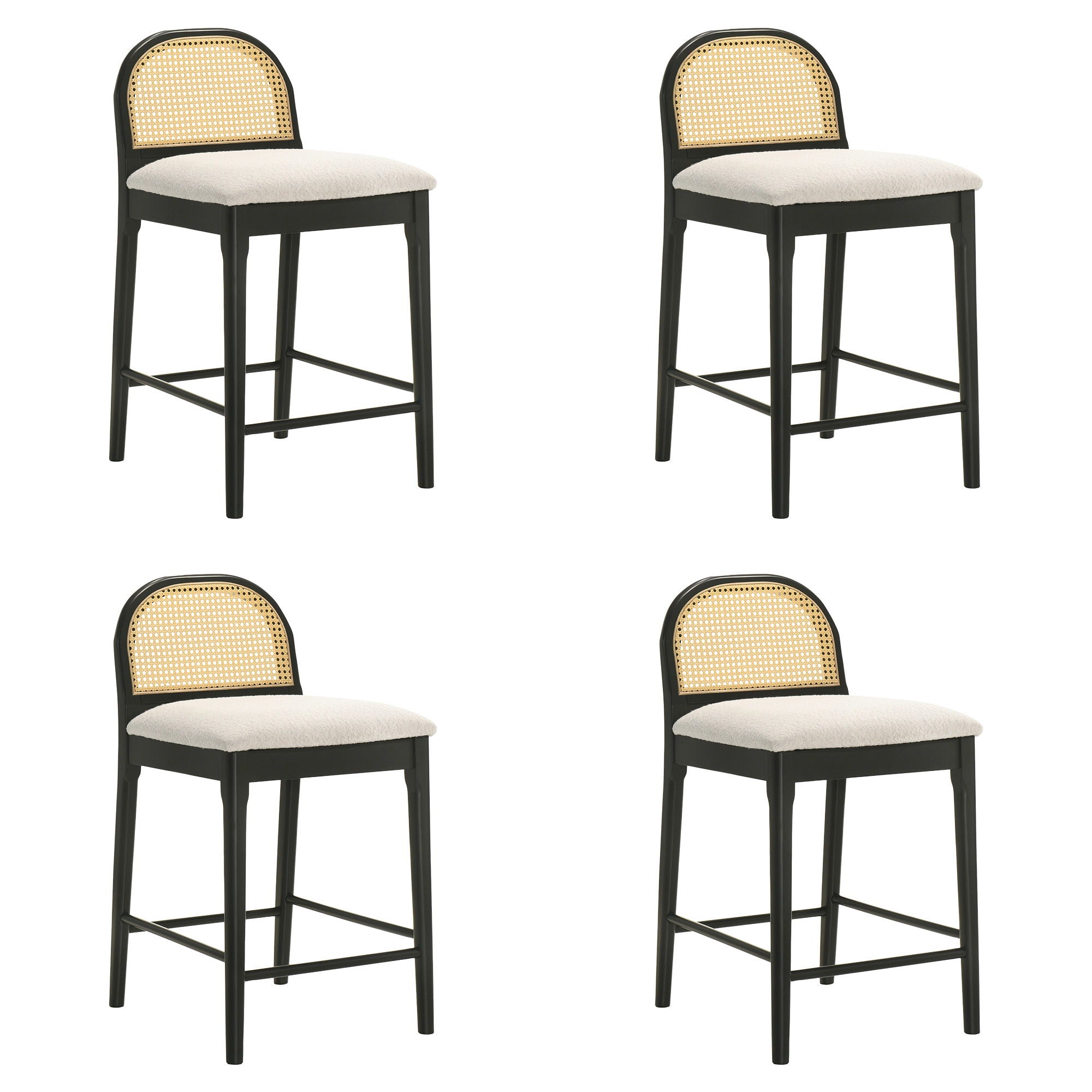 Lucio - Modern Farmhouse Wood Counter Height Kitchen Bar Stool (Set of 4) - Black Finish With White Boucle Fabric Upholstered Seat