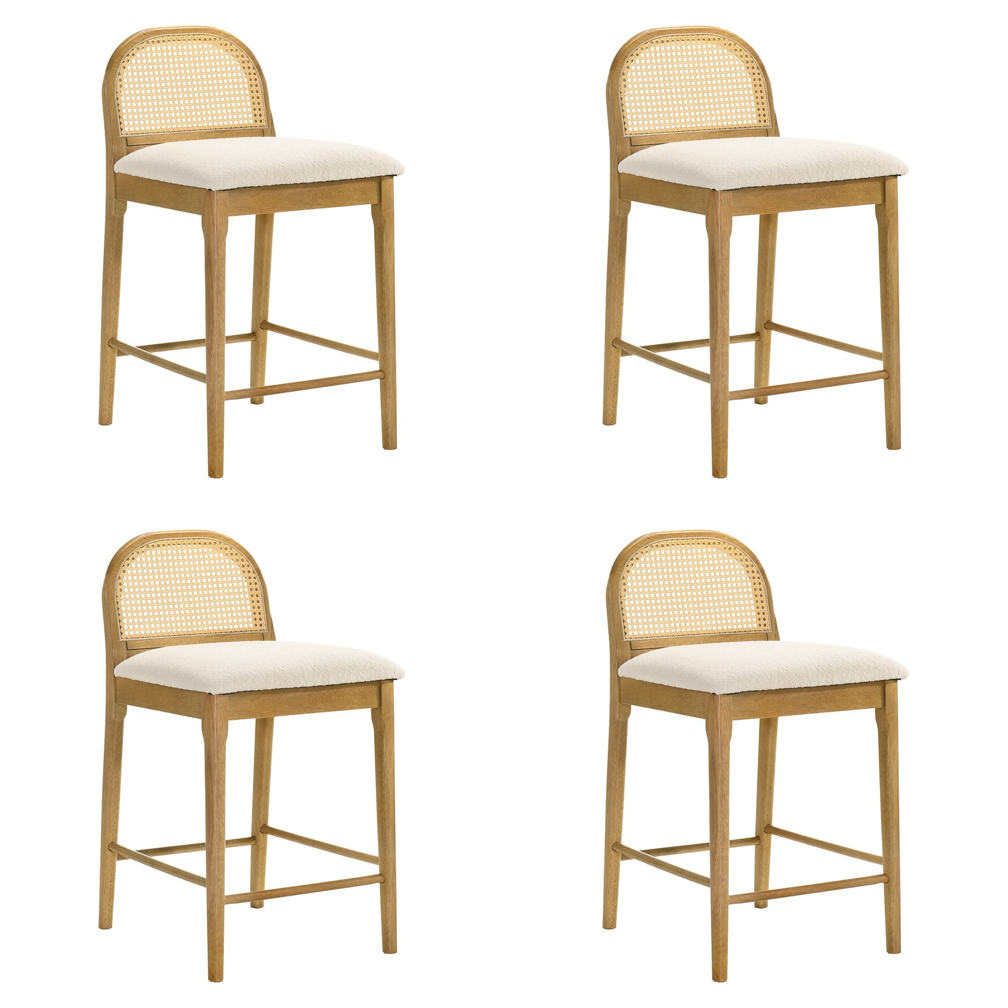Lucio - Modern Farmhouse Wood Counter Height Kitchen Bar Stool (Set of 4) - Amber Glow Finish With White Boucle Fabric Upholstered Seat