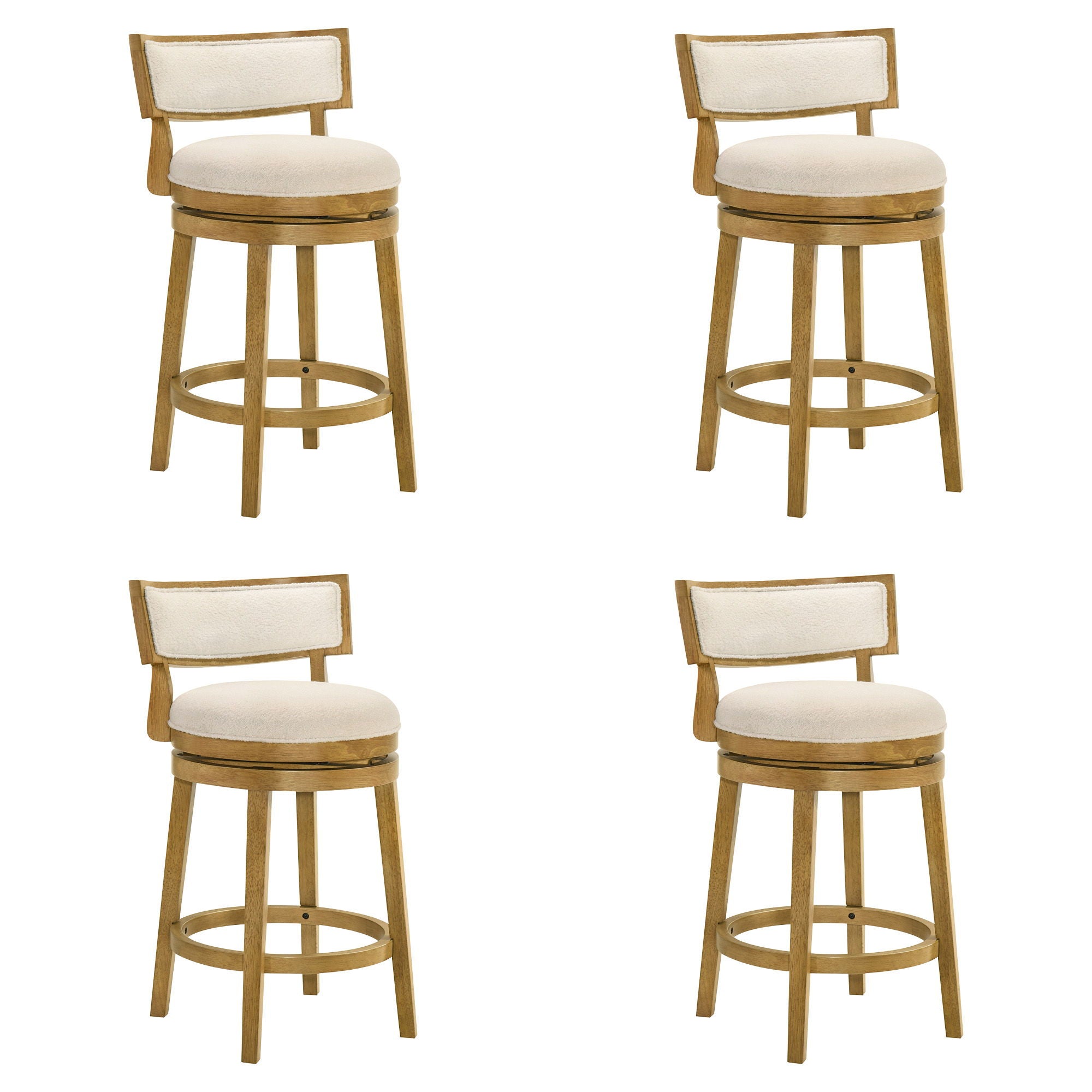Noely - Modern Farmhouse Swivel Wood Counter Height Kitchen Bar Stool (Set of 4) - Amber Glow Finish With White Boucle Fabric Upholstered Seat
