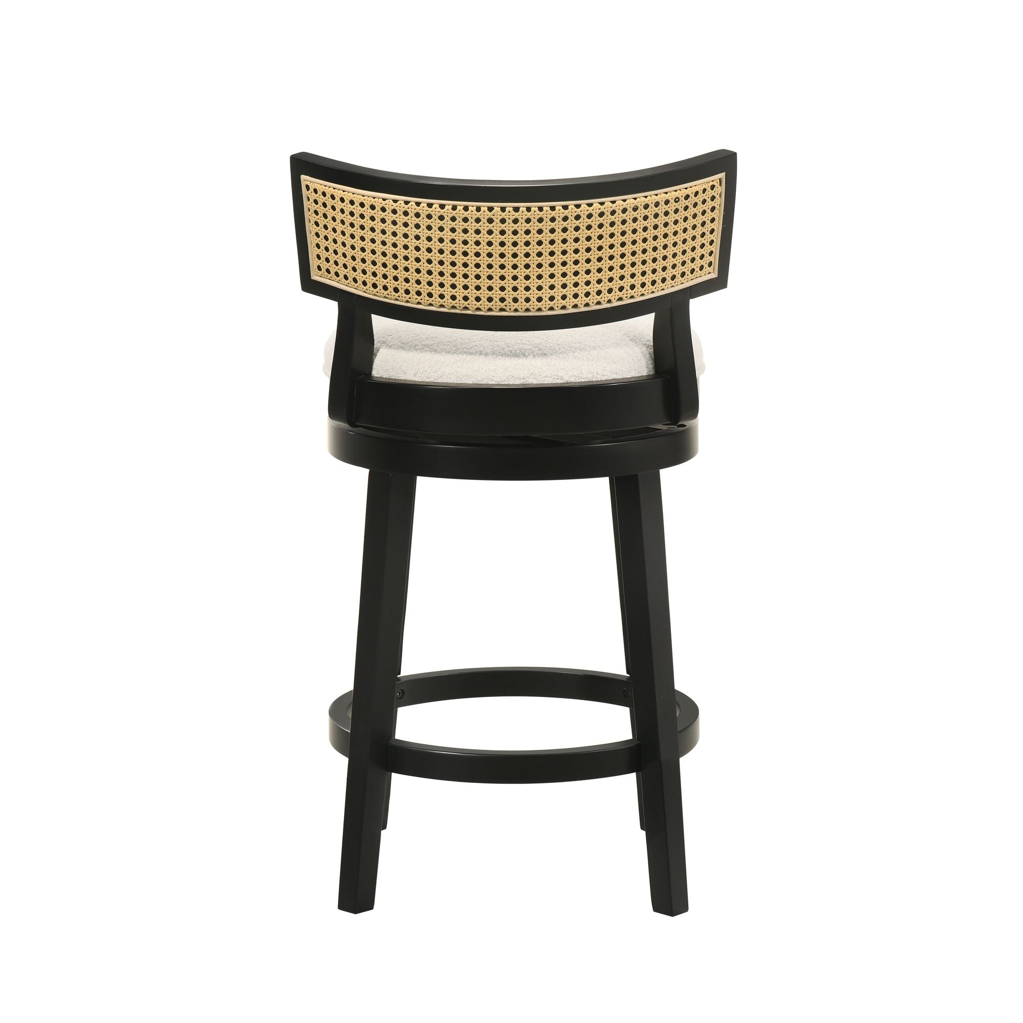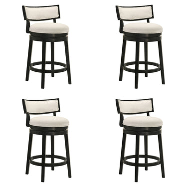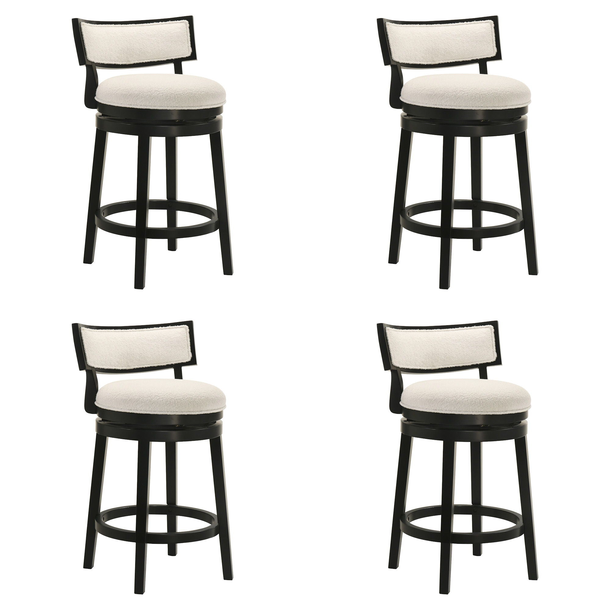 Noely - Modern Farmhouse Swivel Wood Counter Height Kitchen Bar Stool (Set of 4) - Black Finish With White Boucle Fabric Upholstered Seat