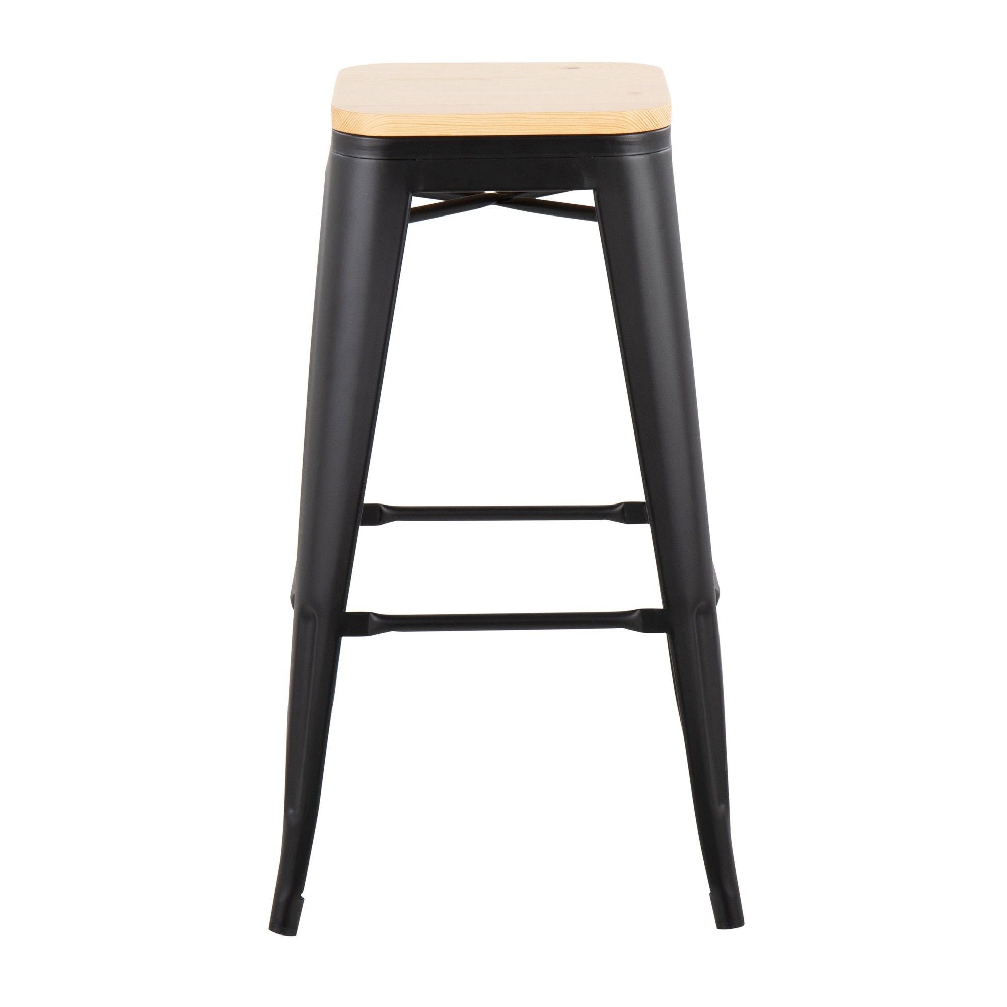 Oregon - Barstool - Black Steel And Natural Wood (Set of 2)