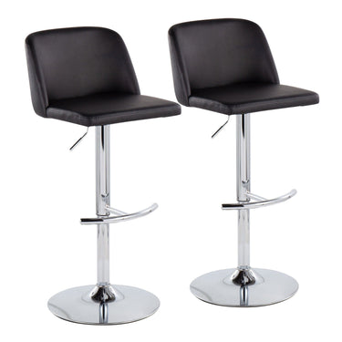 Toriano - Adjustable Bar Stool - Chrome With Rounded T Footrest And Black Faux Leather (Set of 2)