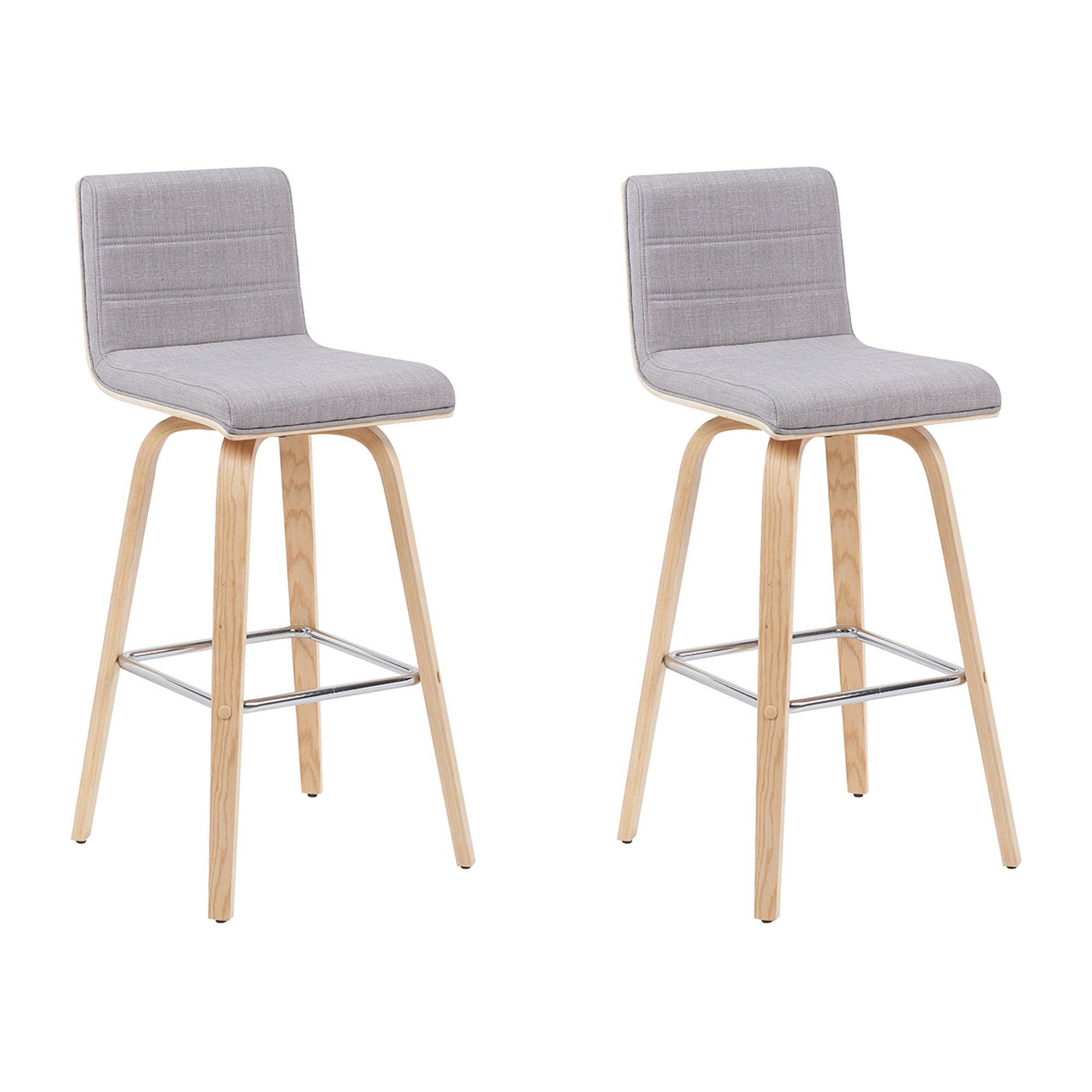 Vienna - Modern Swivel Bar Height Stool (Set of 2) - Gray Upholstered Seat And Patterned Oak Wood Frame