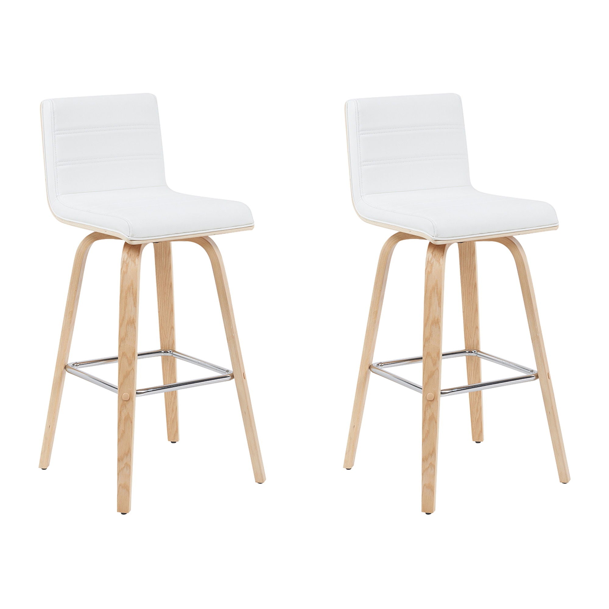 Vienna - Modern Swivel Bar Height Stool (Set of 2) - White Faux Leather Seat And Patterned Oak Wood Frame