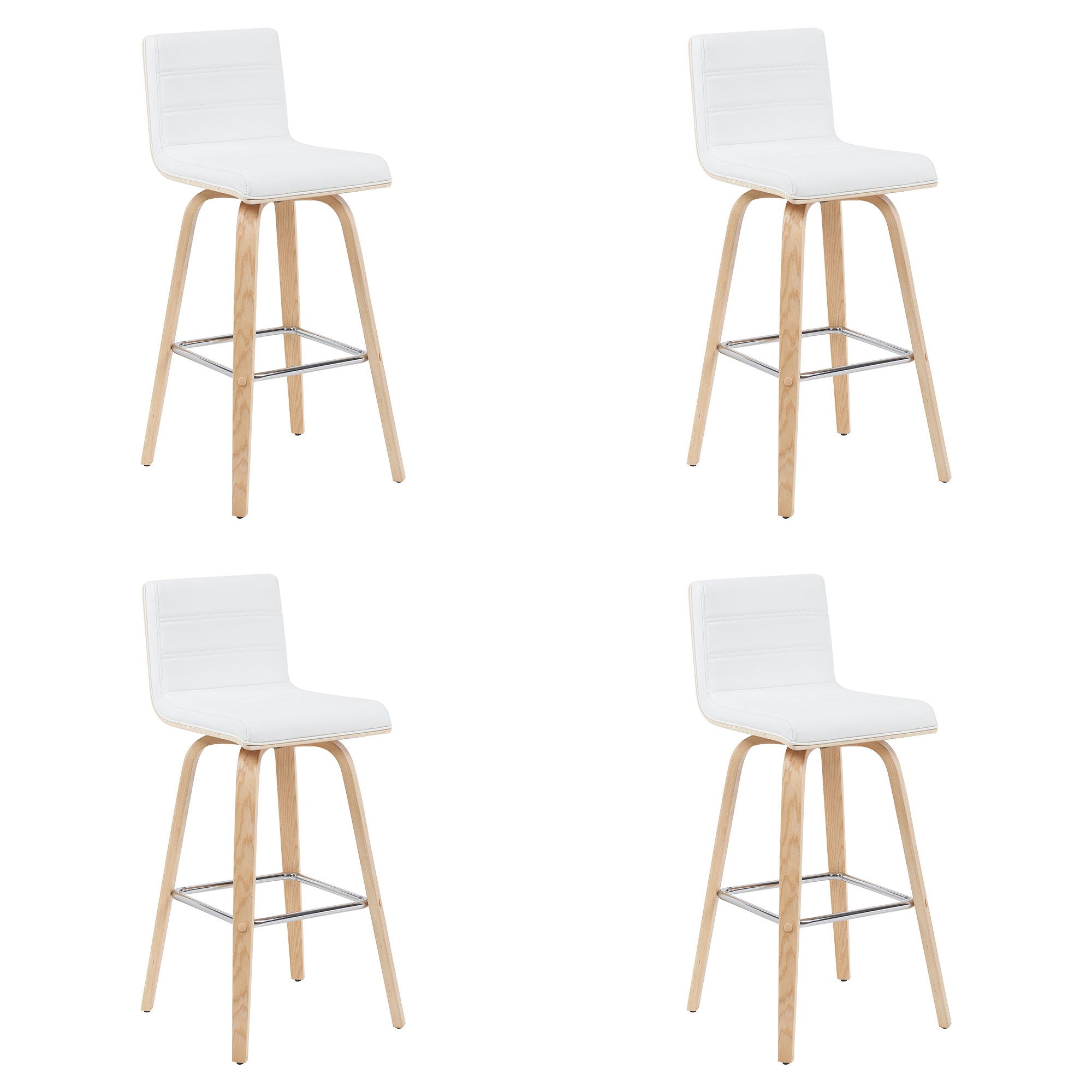 Vienna - Modern Swivel Bar Height Stool (Set of 4) - White Faux Leather Seat And Patterned Oak Wood Frame