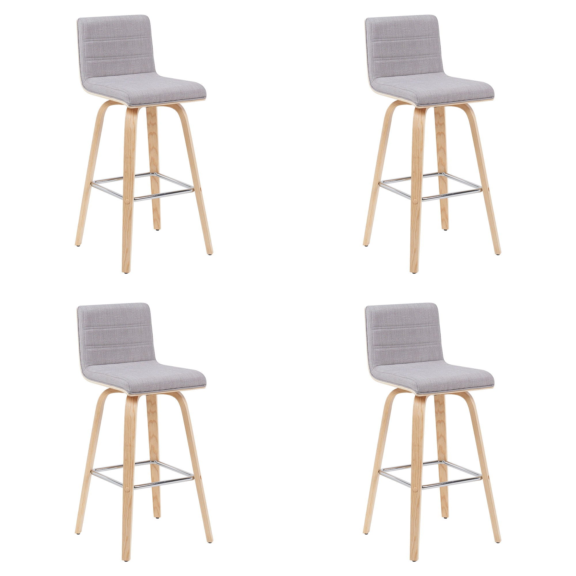 Vienna - Modern Swivel Bar Height Stool (Set of 4) - Gray Upholstered Seat And Patterned Oak Wood Frame