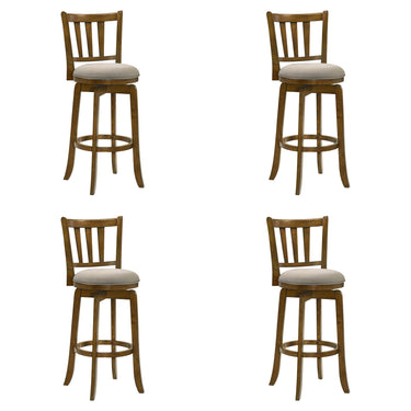 Wren - Modern Farmhouse Swivel Wood Bar Height Kitchen Bar Stool (Set of 4) - Sepia Brown Finish With Light Scone Fabric Upholstered Seat