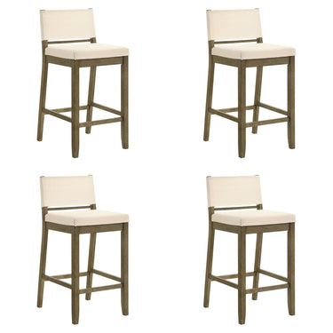 Yaneli - Contemporary Natural Wood Bar Height Kitchen Bar Stool (Set of 4) - Putty Brown Finish With White Fabric Upholstered Seat