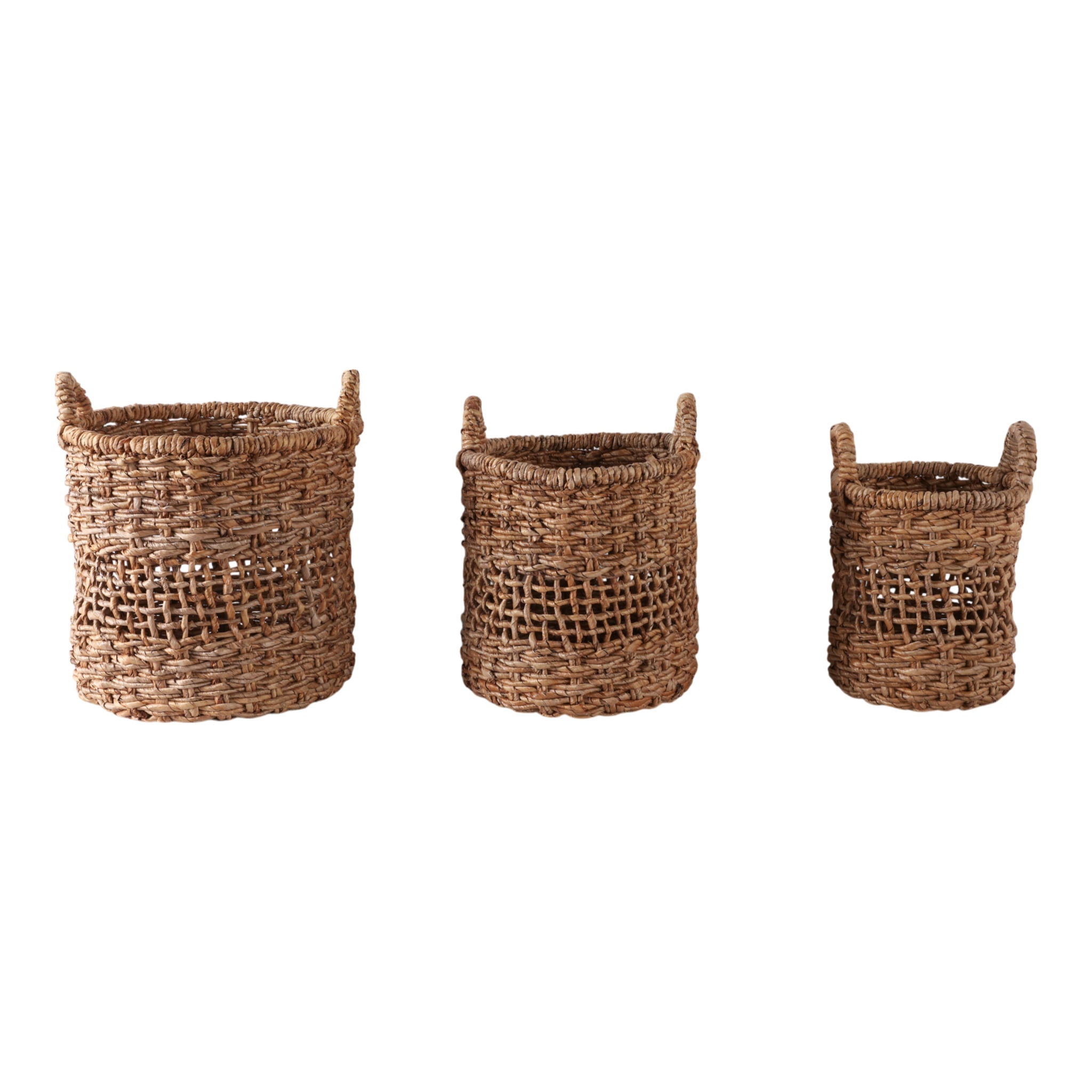 12" / 15" / 17" Open Weave Banana Leaf Baskets (Set of 3) - Natural
