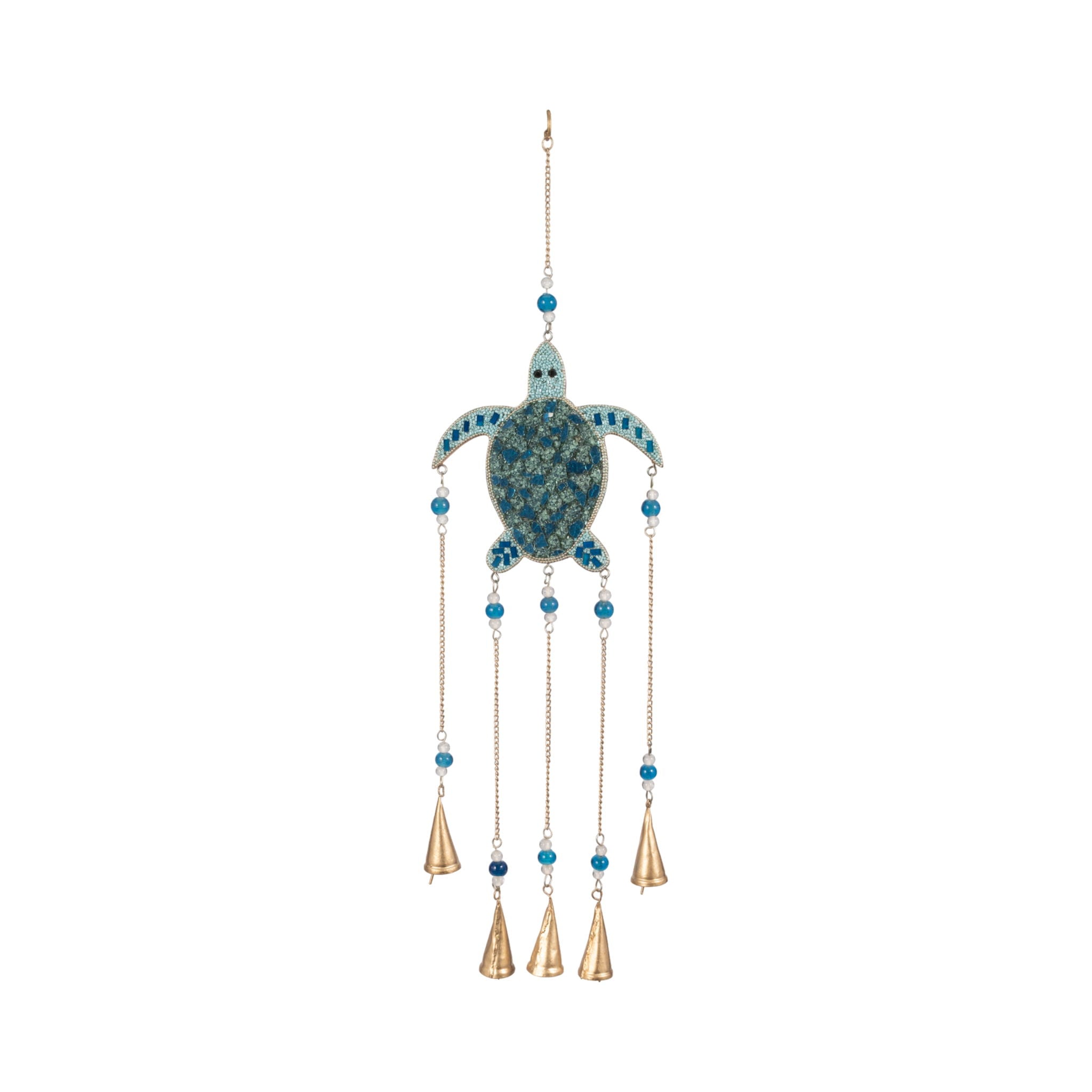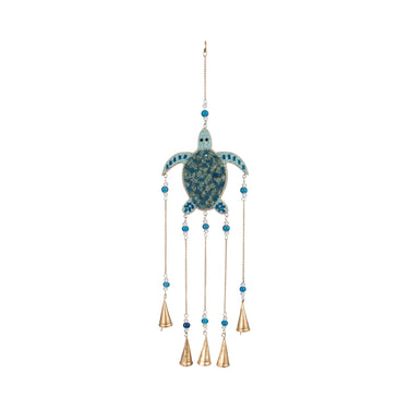 31" Mosaic Turtle With Bells - Blue / Gold