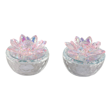 Glass Trinket Box With Lotus Top (Set of 2) - Clear / Blush