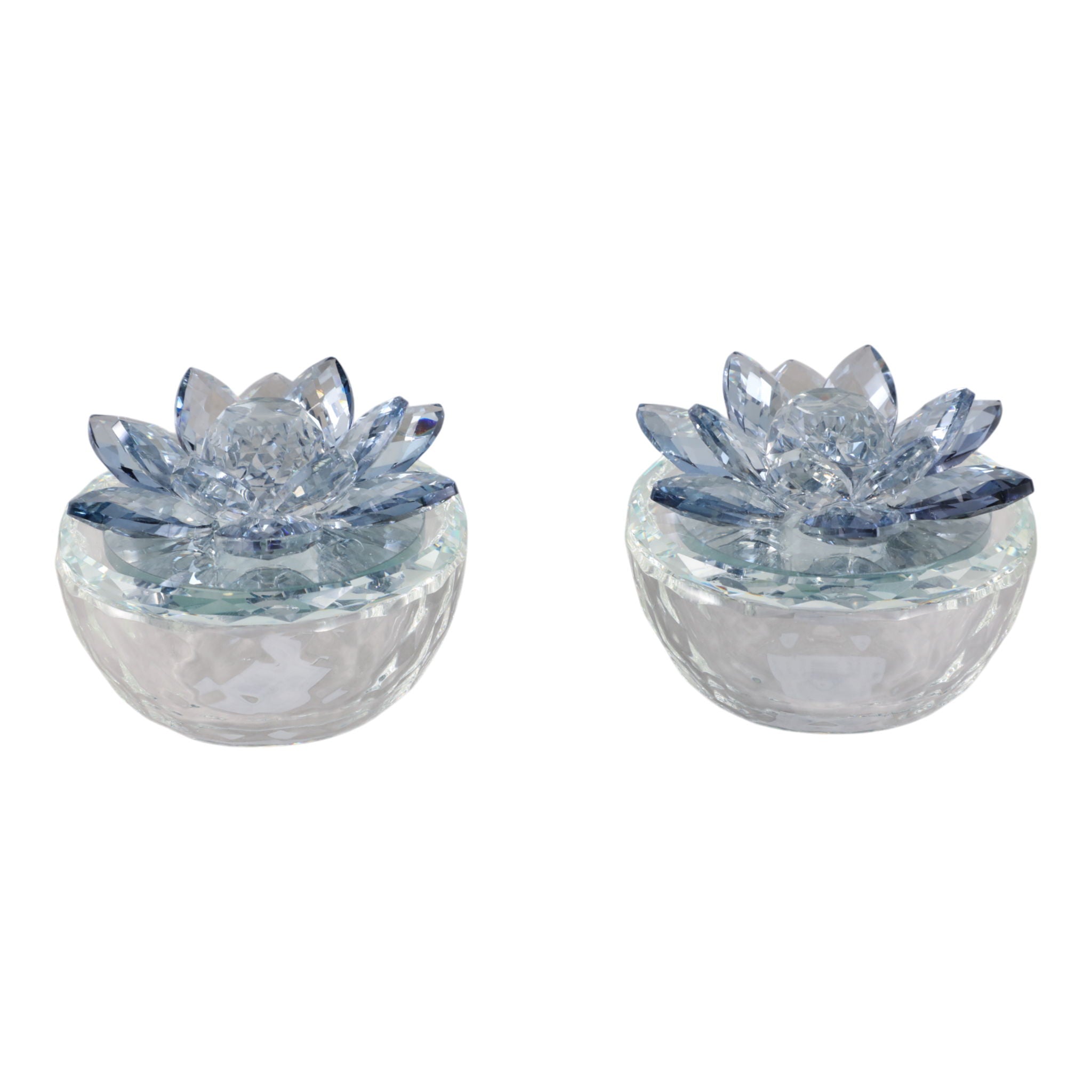 Glass Trinket Box With Lotus Top (Set of 2) - Clear / Light Blue