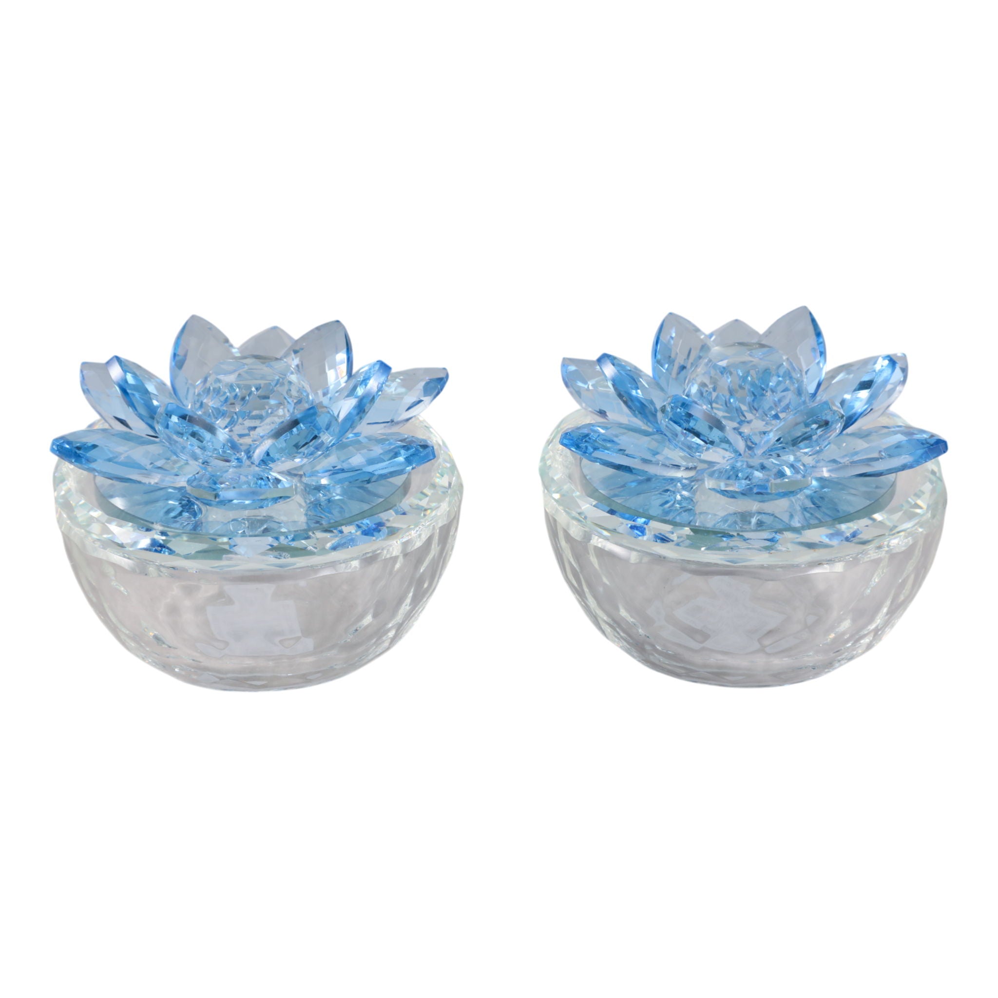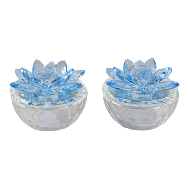 Glass Trinket Box With Lotus Top (Set of 2) - Clear / Royal Blue