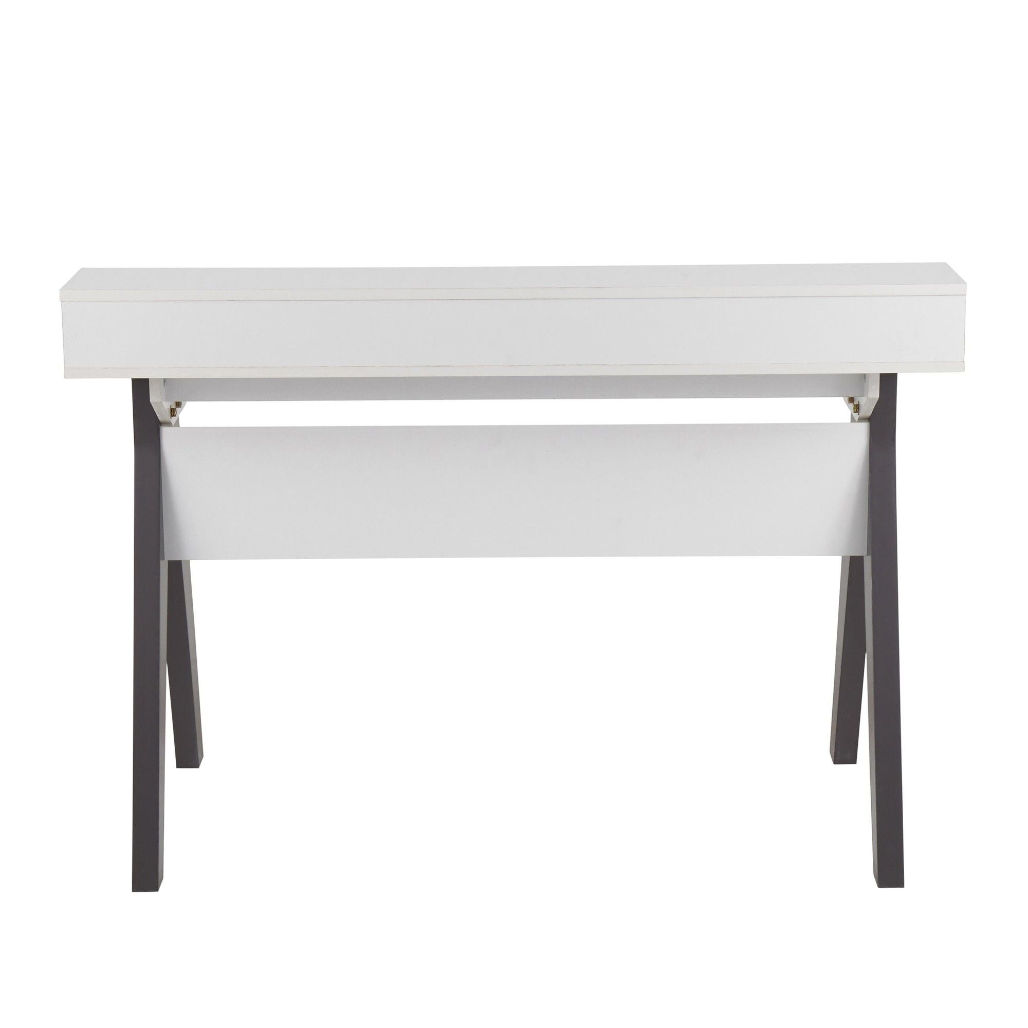 Add a touch of contemporary style to your home office with the Wishbone Desk by LumiSource. This unique design embodies architectural character and is sure to wow! The Wishbone Desk features a white wood top with grey wood accents, a raised shelf, and two drawers for storage.